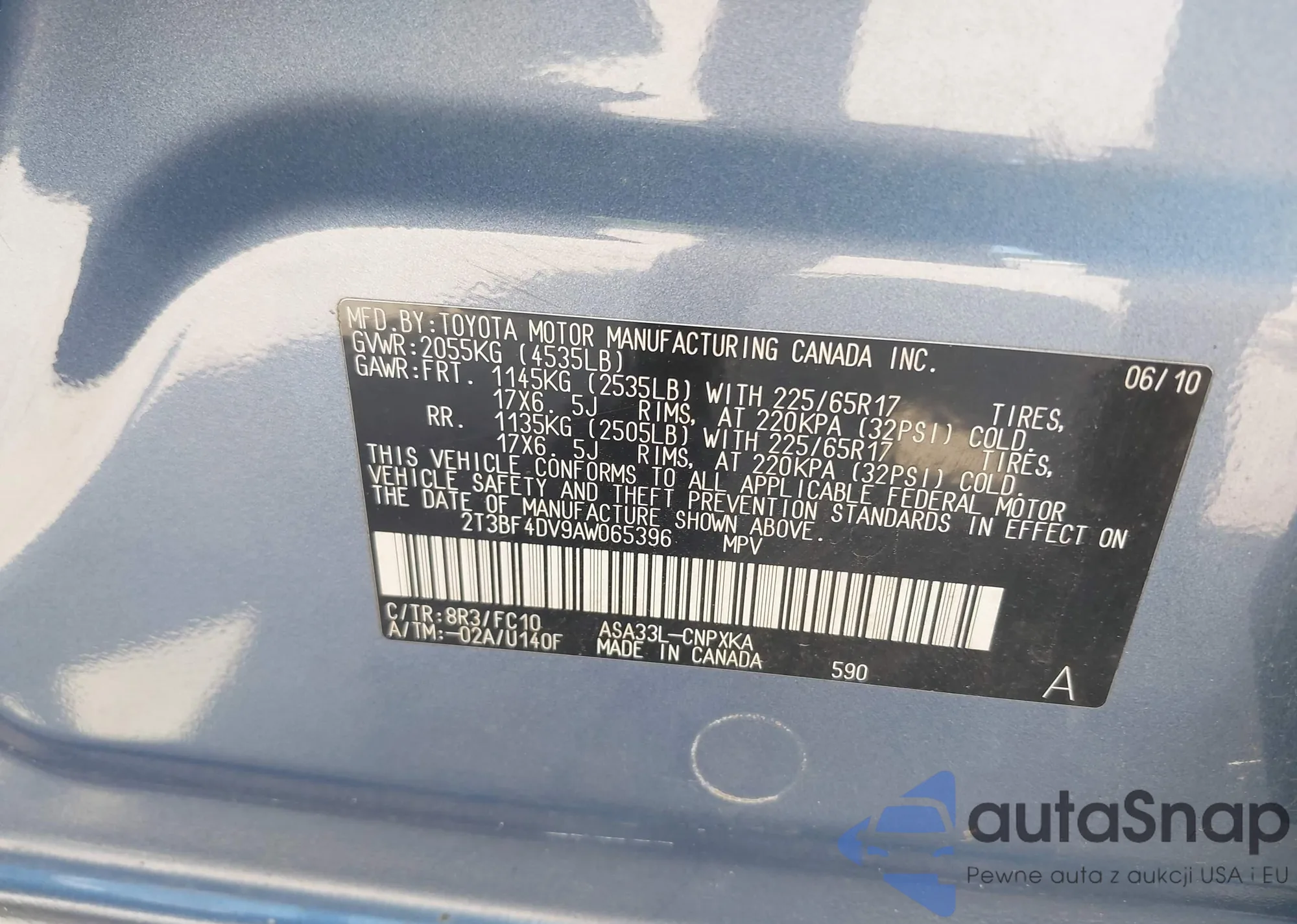 • VIN 2T3BF4DV9AW065396