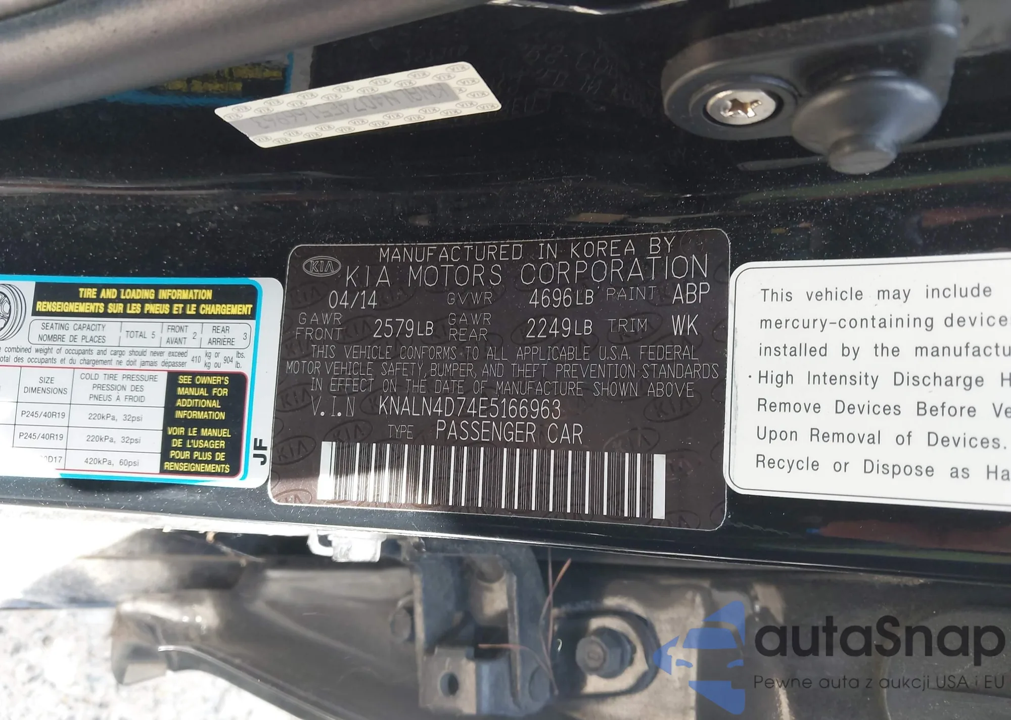 LOT: 42769193 VIN: KNALN4D74E5166963