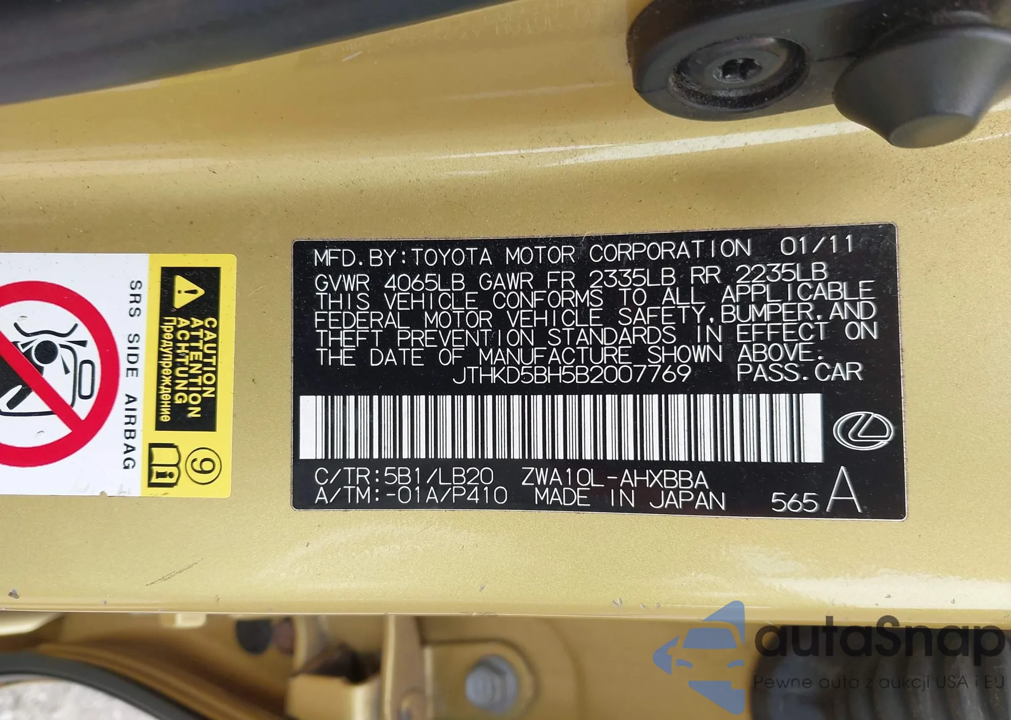 LOT: 42775601 VIN: JTHKD5BH5B2007769