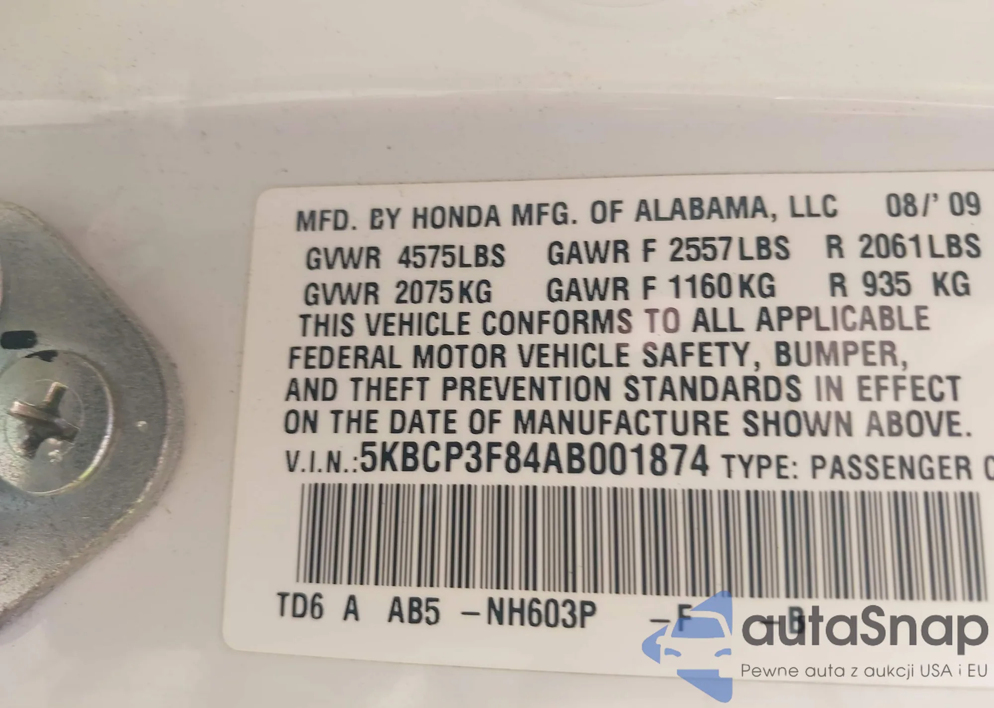 • VIN 5KBCP3F84AB001874