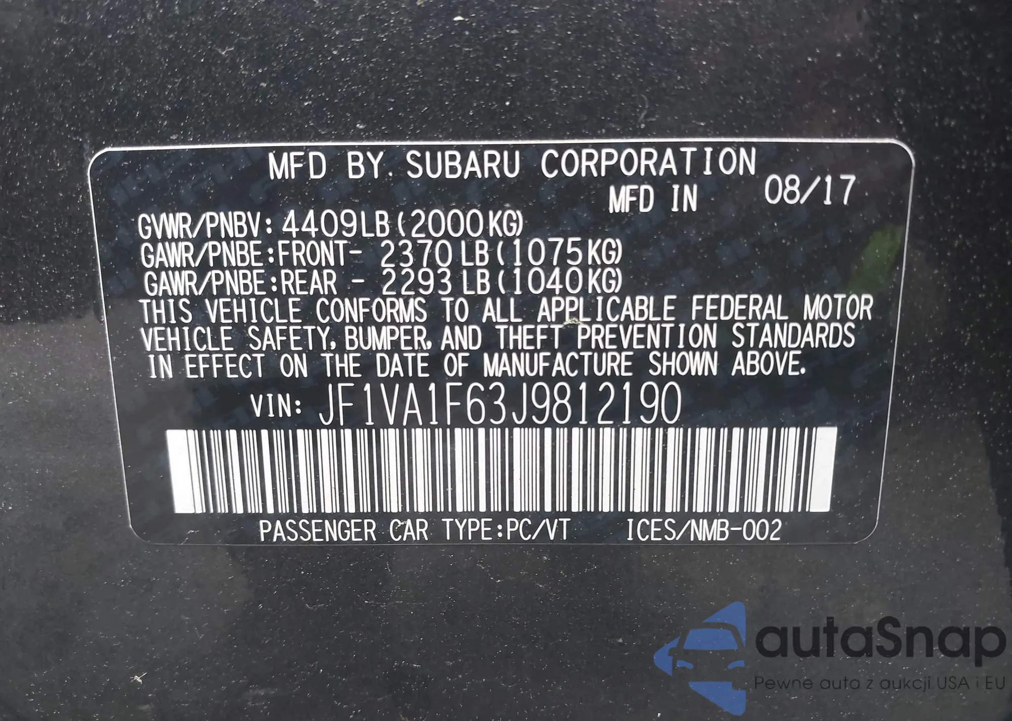 LOT: 42650437 VIN: 3FADP0L33AR261519
