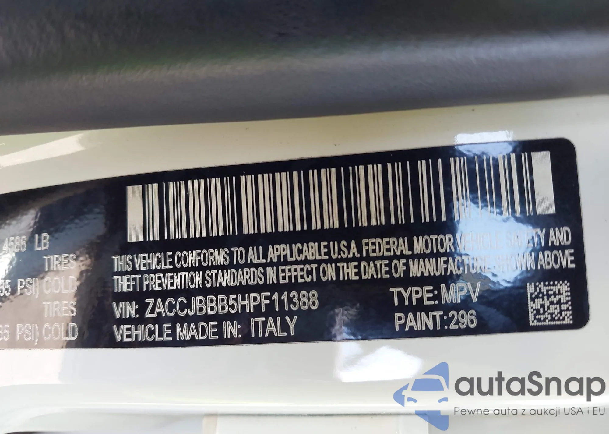 • VIN ZACCJBBB5HPF11388