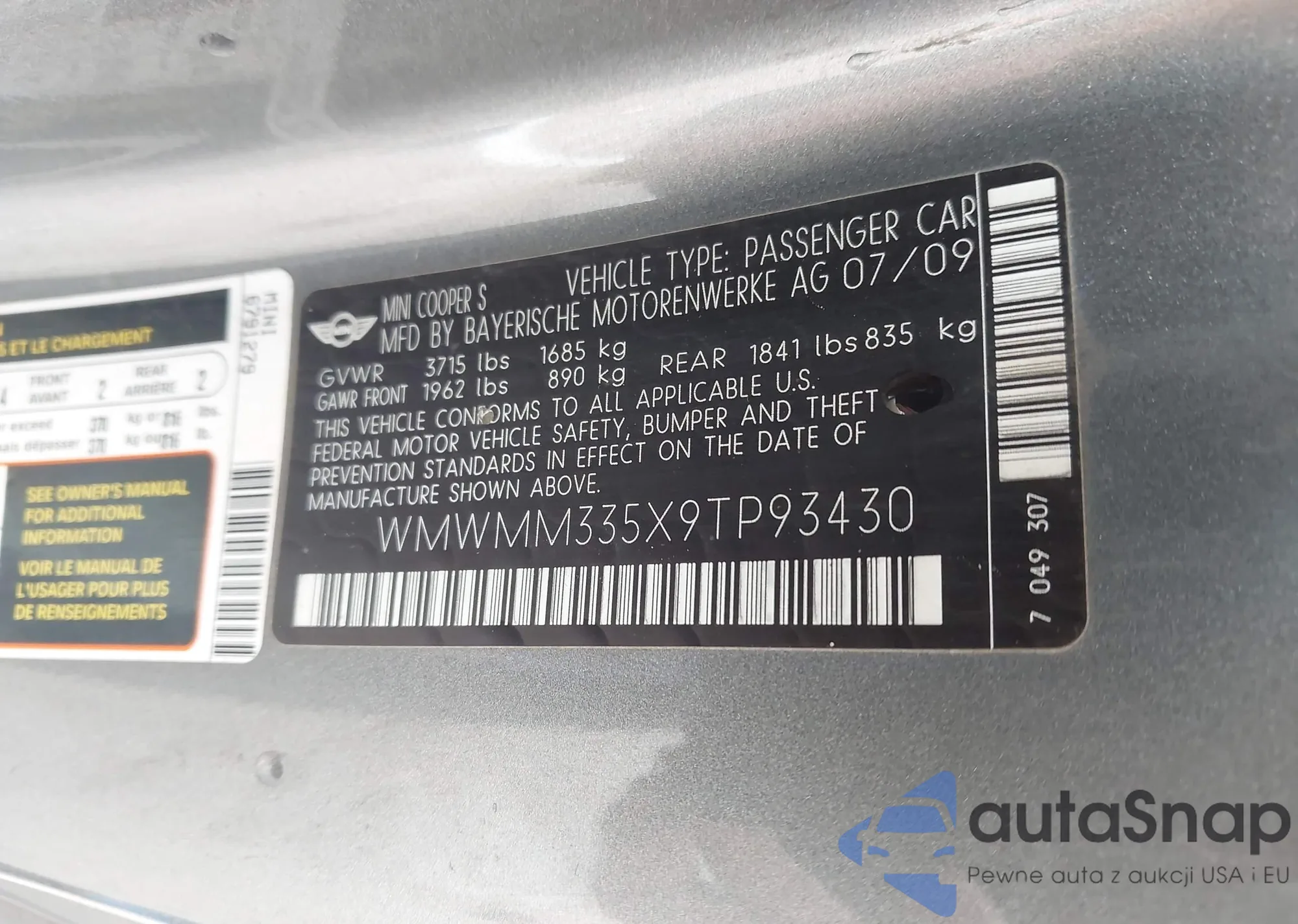 • VIN WMWMM335X9TP93430