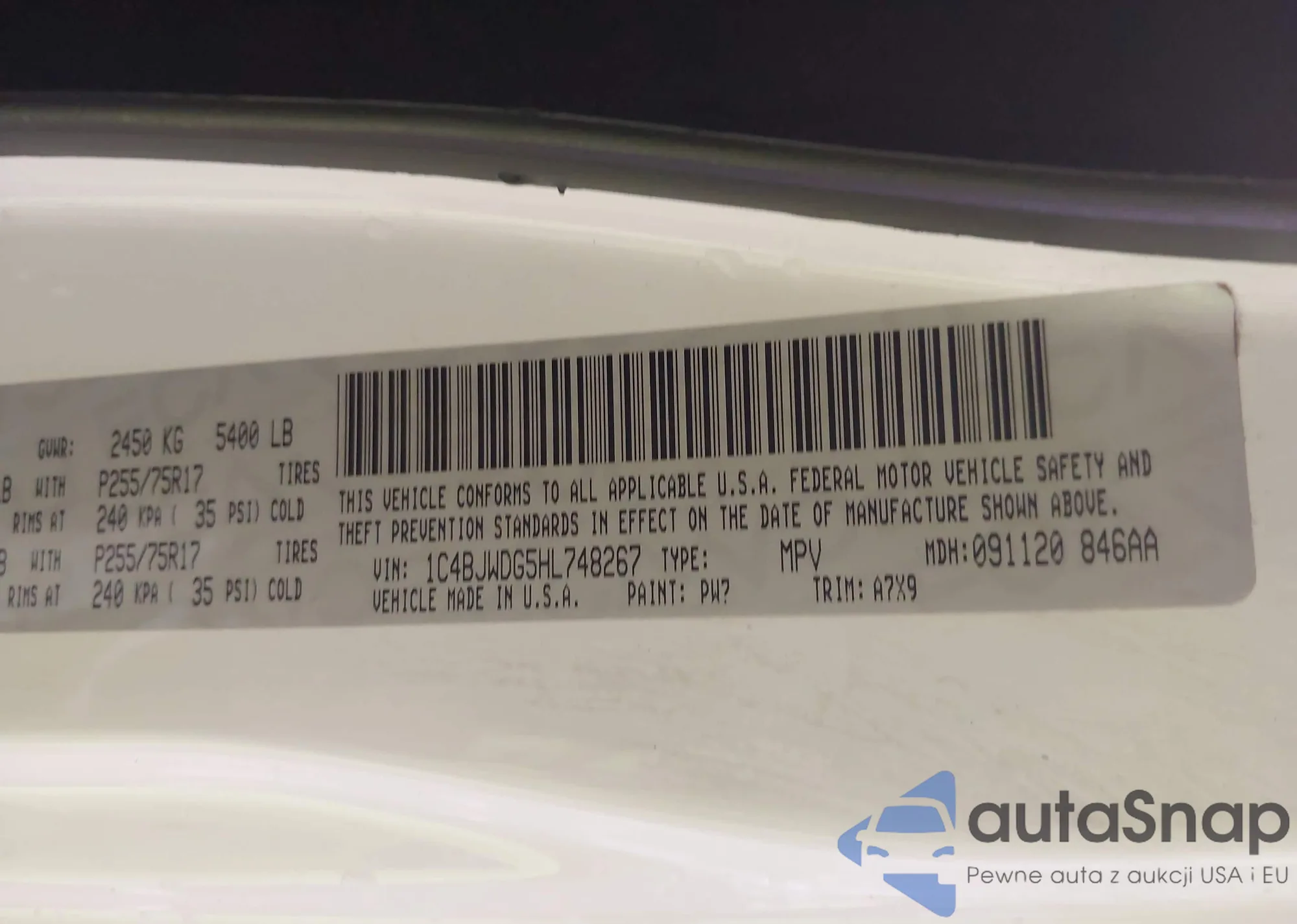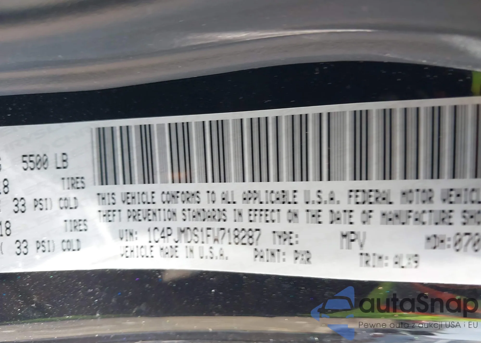 LOT: 42577775 VIN: 1C4PJMDS1FW718287