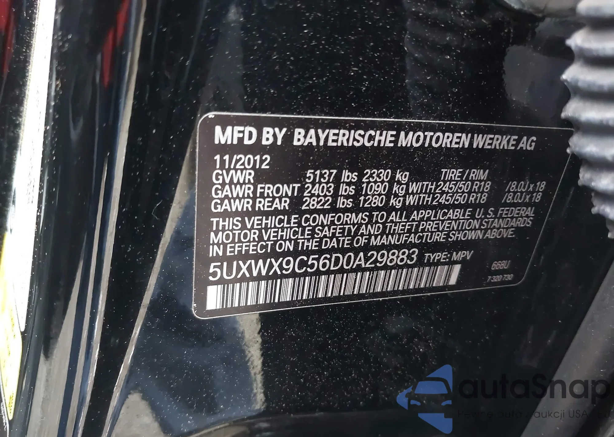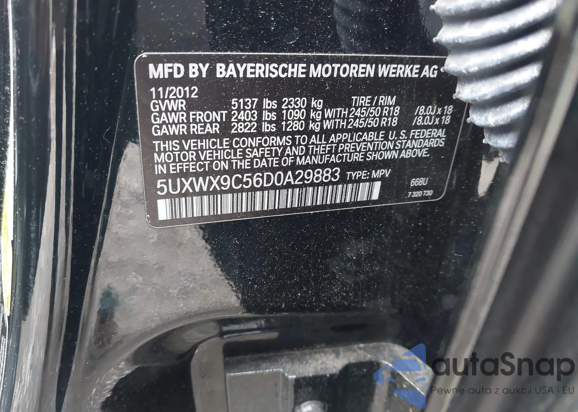 • VIN 5UXWX9C56D0A29883