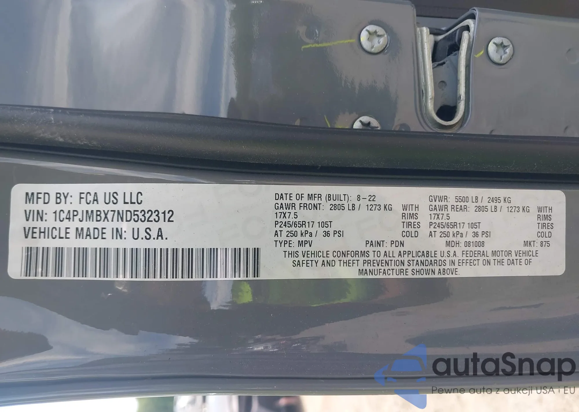 • VIN 1C4PJMBX7ND532312