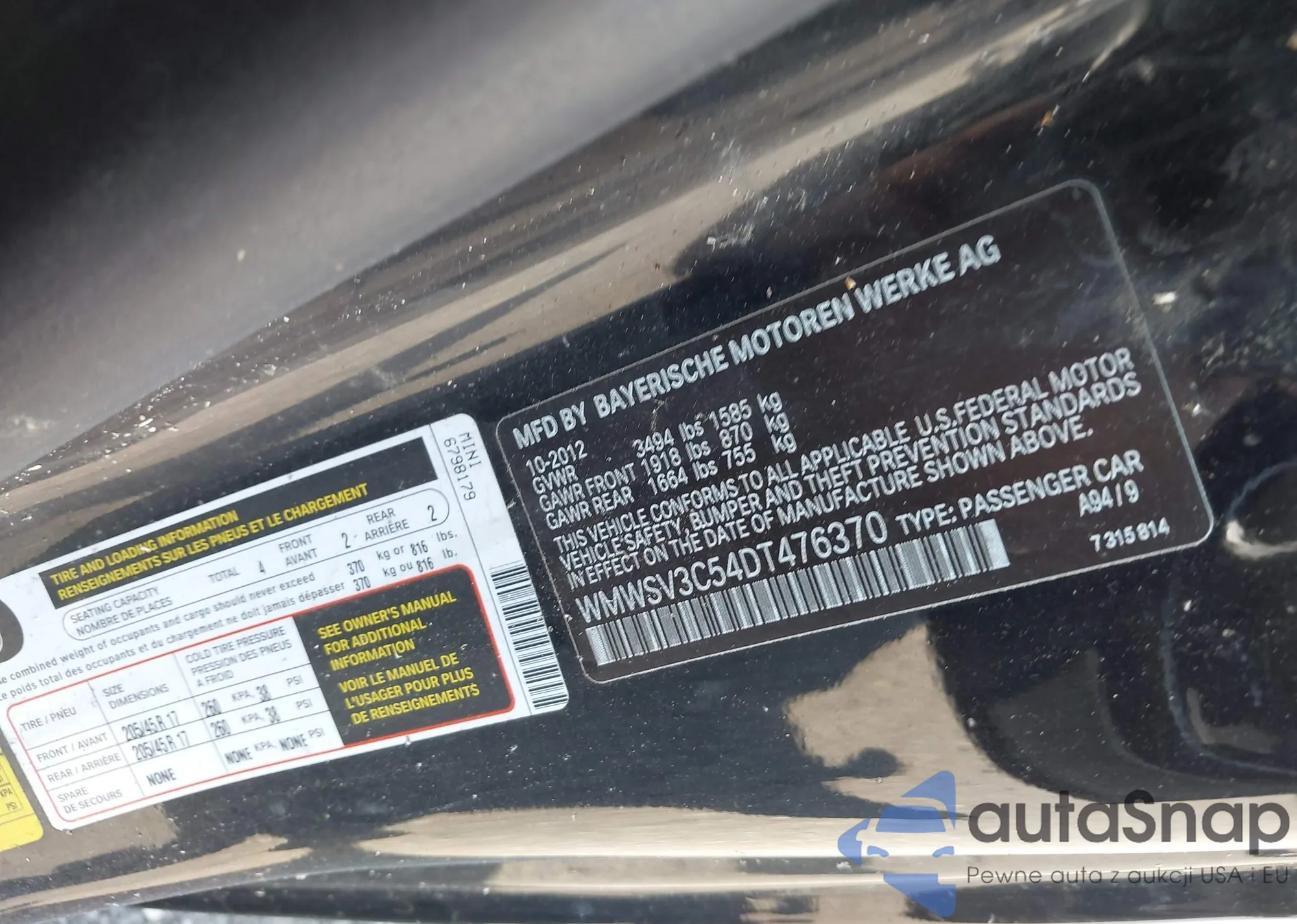 • VIN WMWSV3C54DT476370