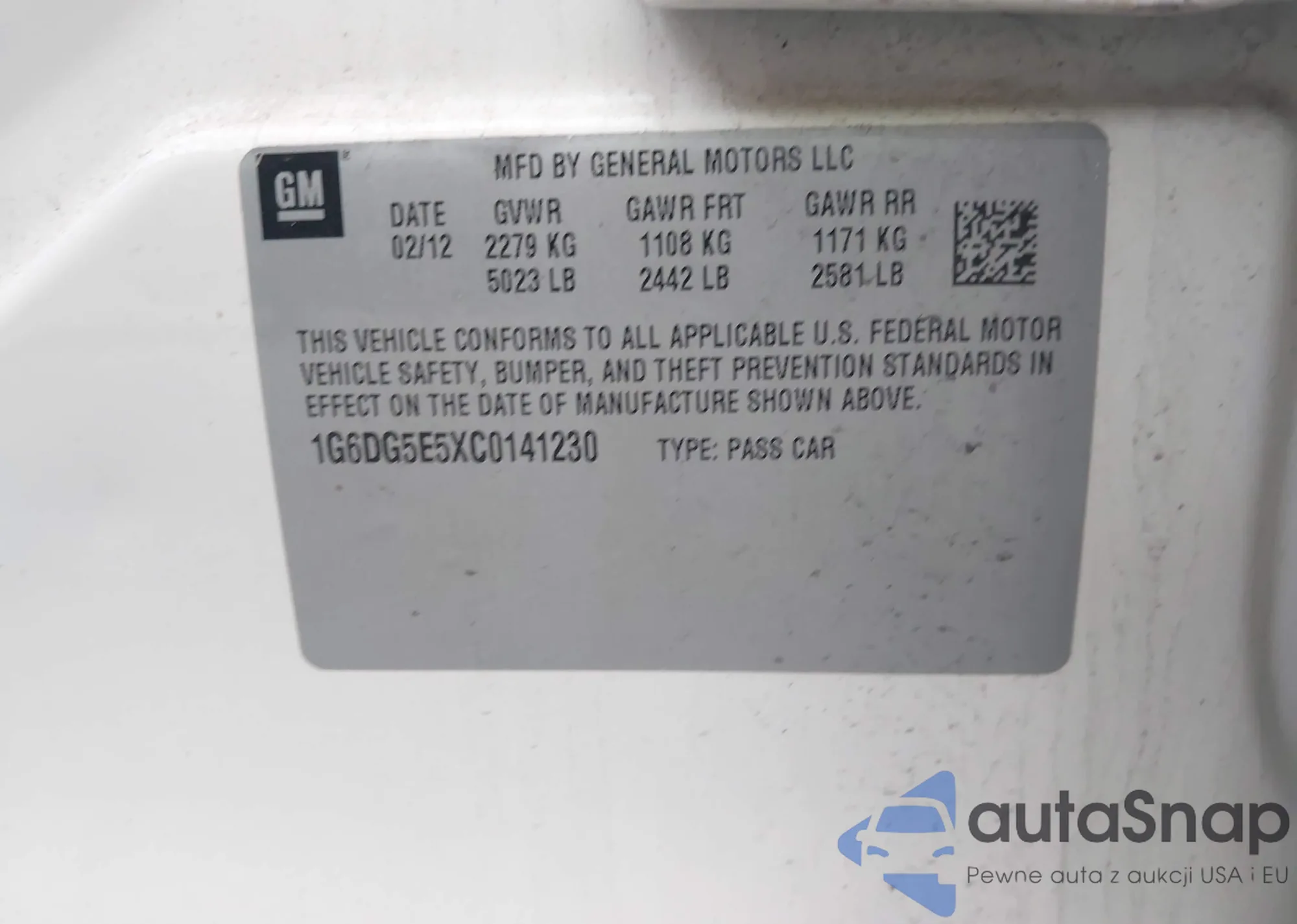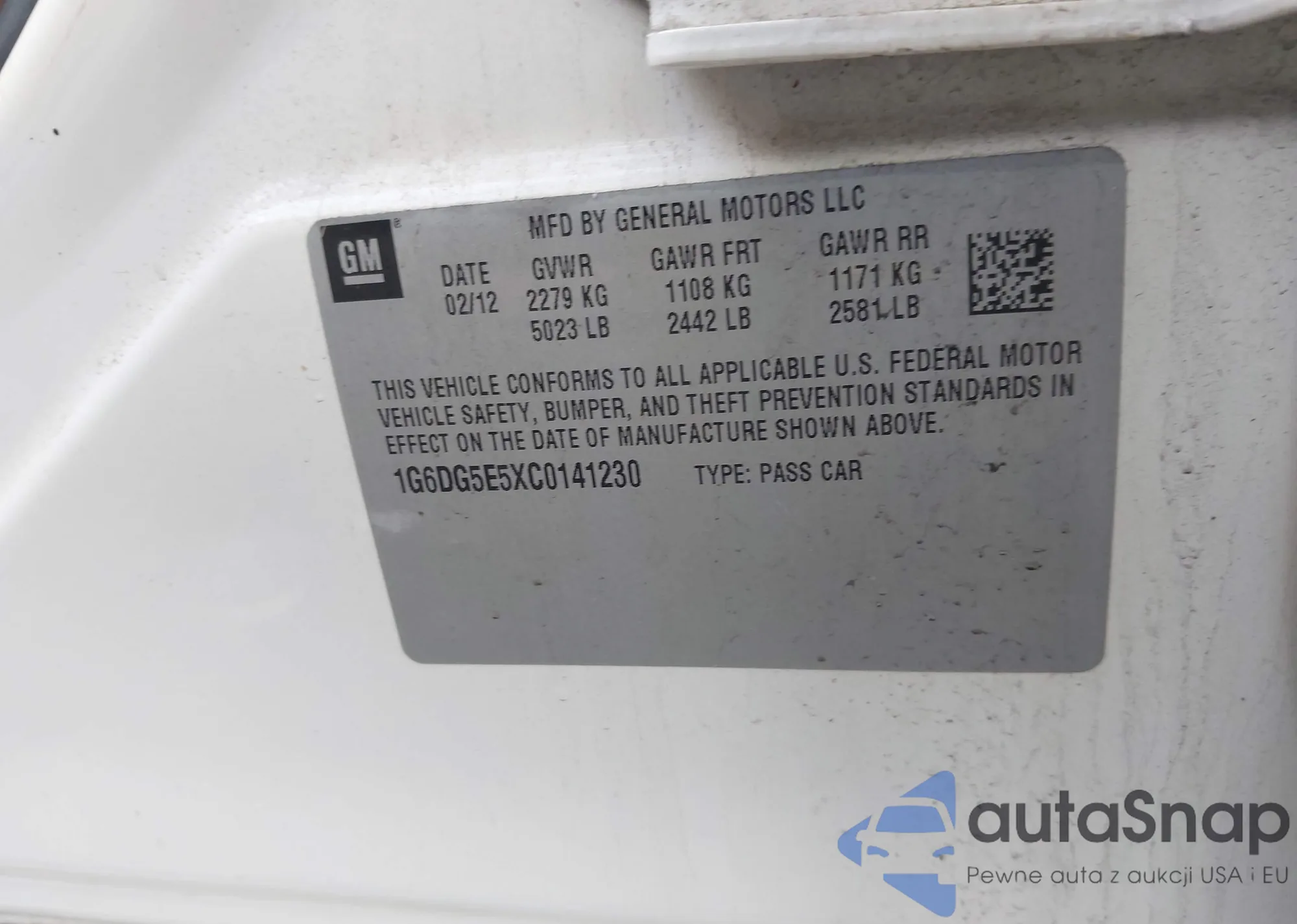 • VIN 1G6DG5E5XC0141230