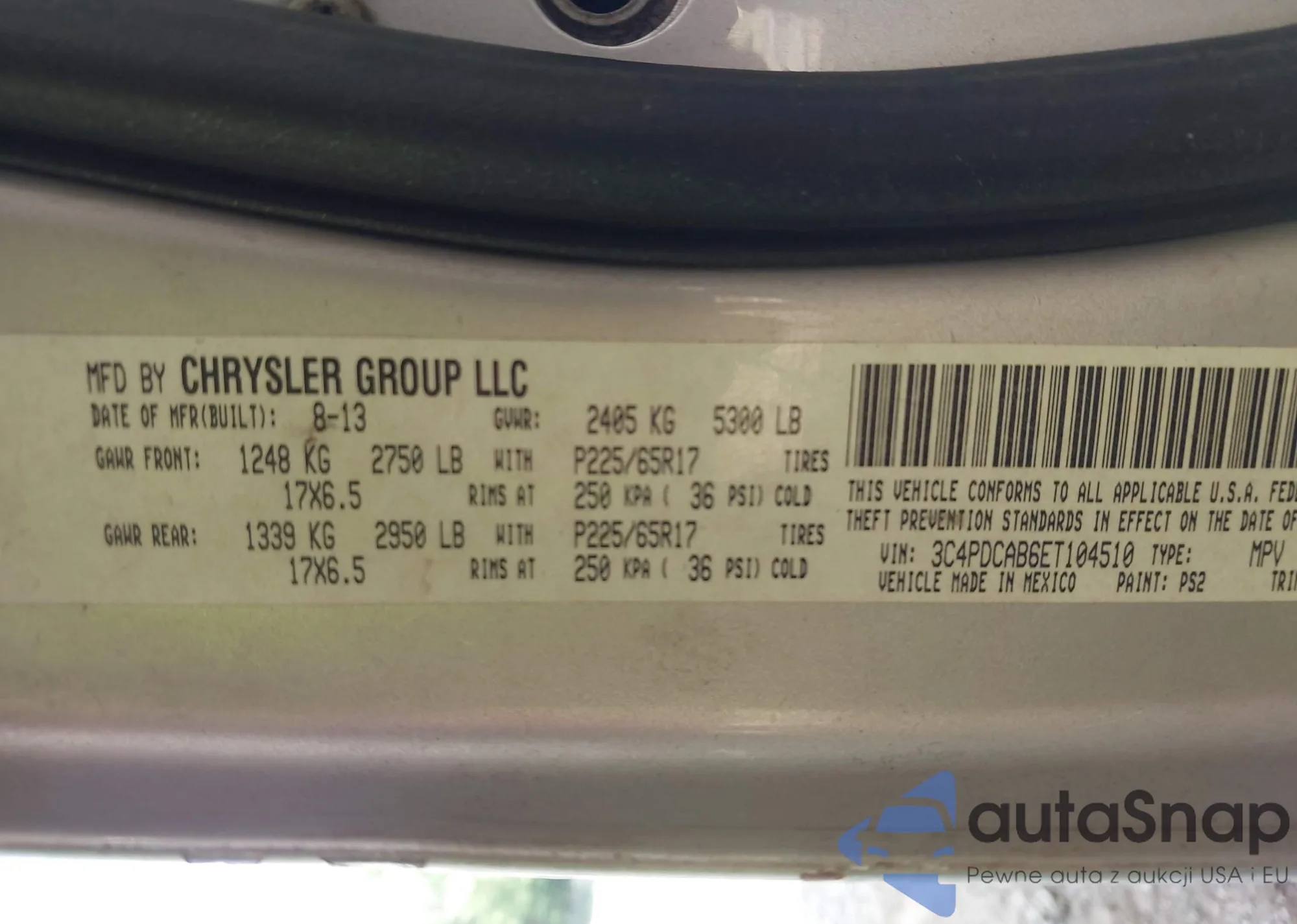 • VIN 3C4PDCAB6ET104510
