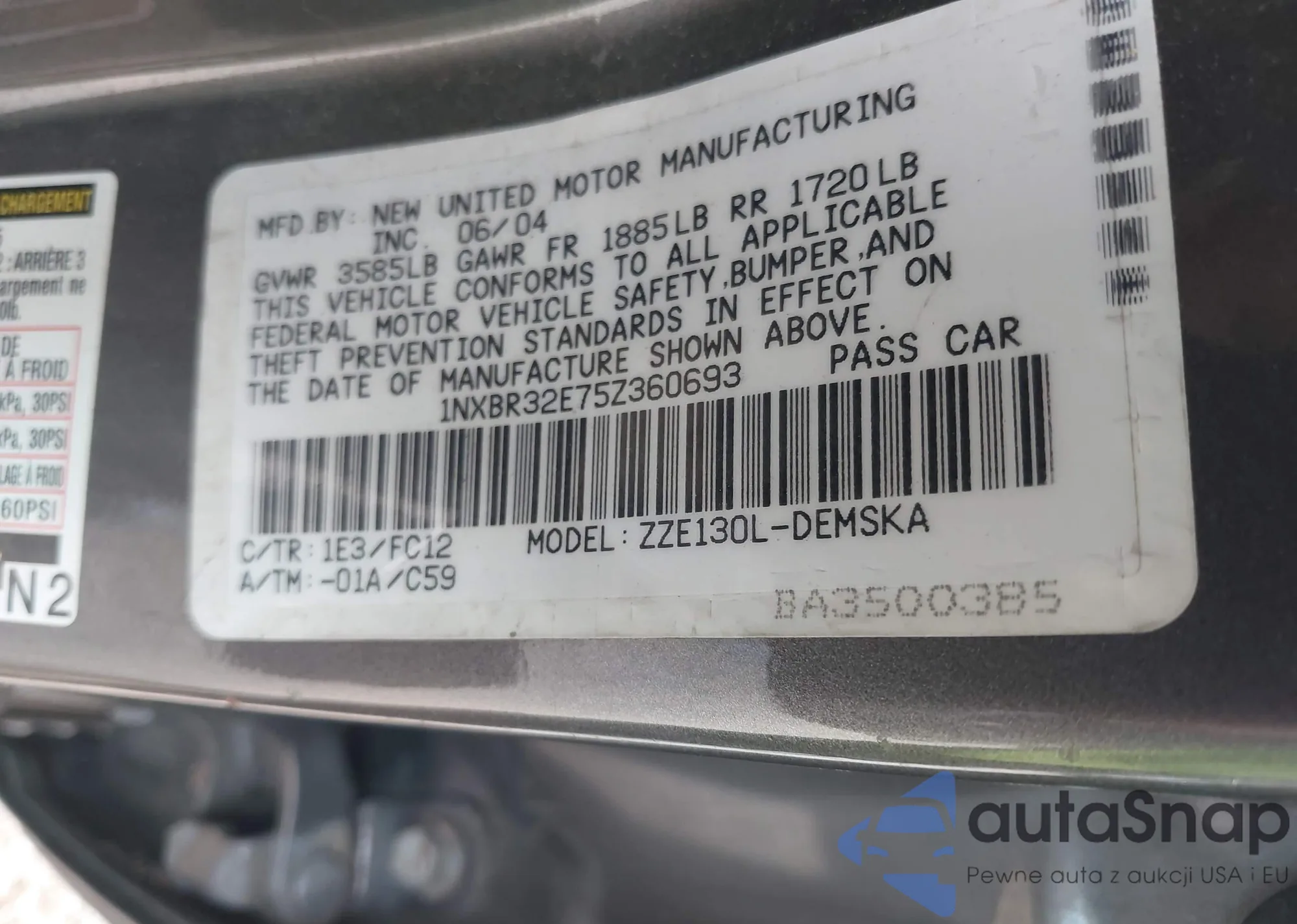 LOT: 42730680 VIN: 1NXBR32E75Z360693