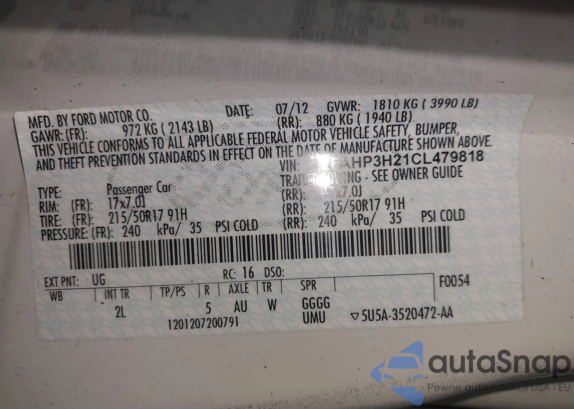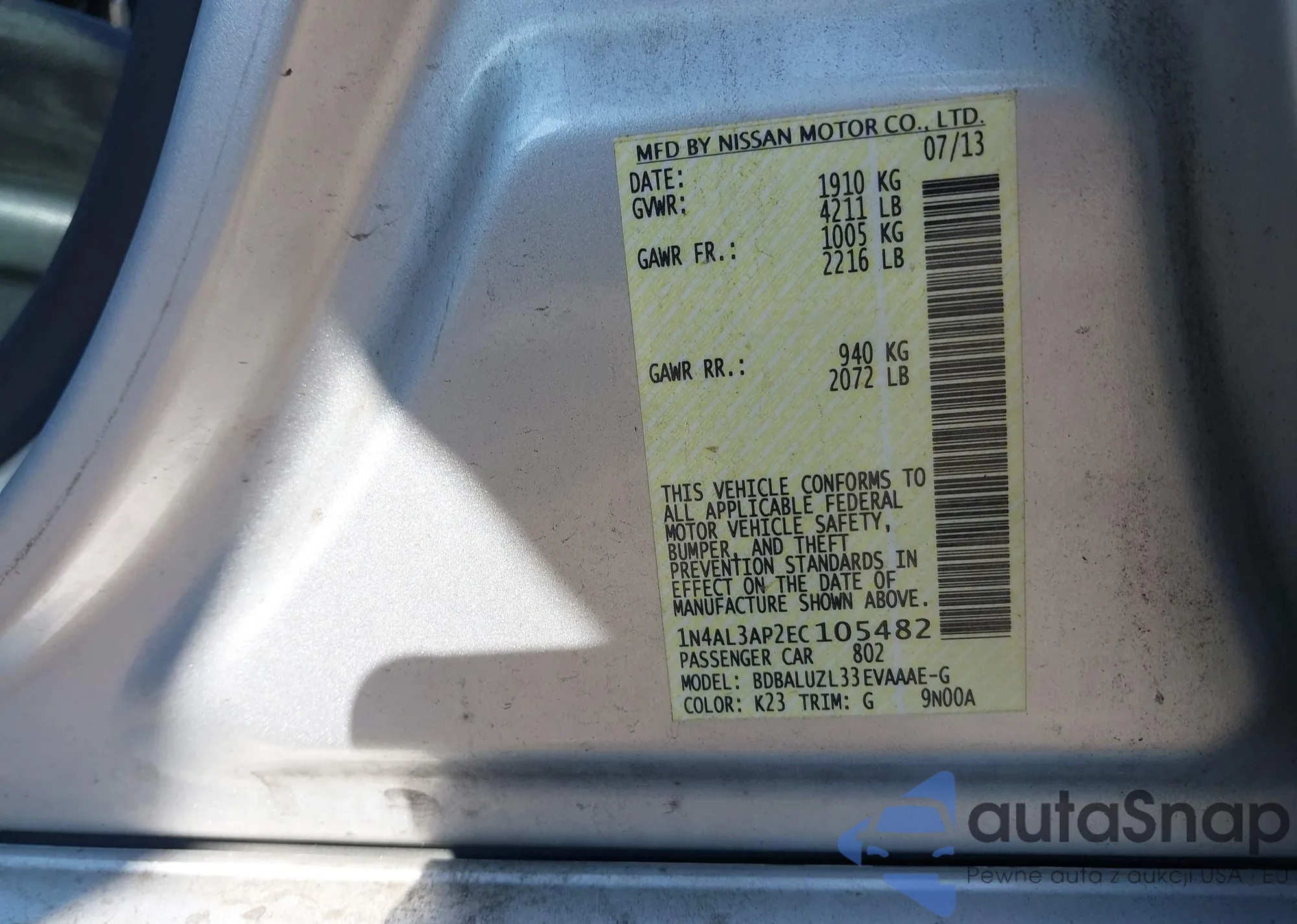 LOT: 42793157 VIN: 1N4AL21E57C195500