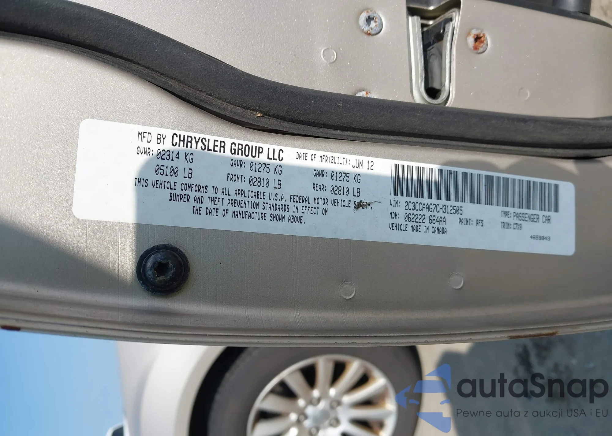 • VIN 2C3CCAAG7CH312505
