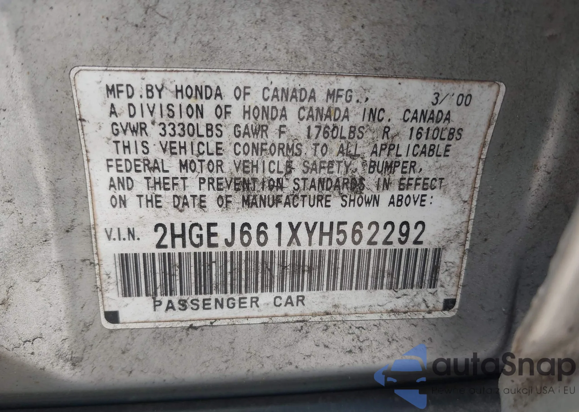 • VIN 2HGEJ661XYH562292