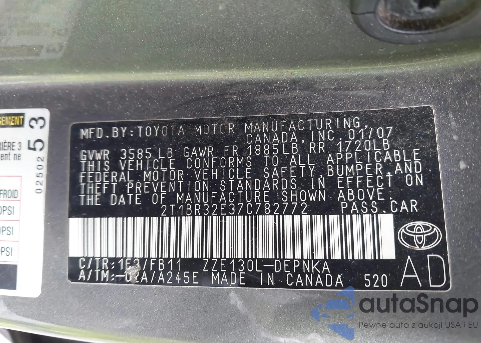 LOT: 42872329 VIN: 2T1BR32E37C782772