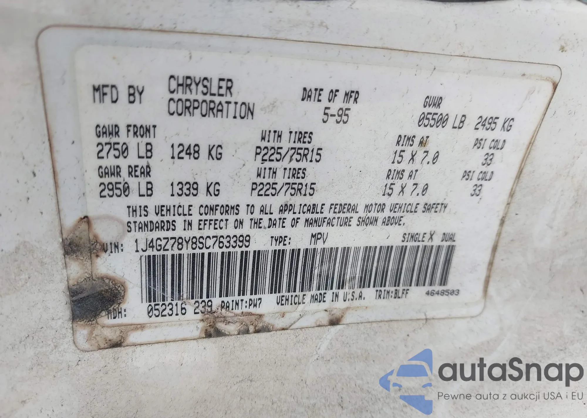 • VIN 1J4GZ78Y8SC763399