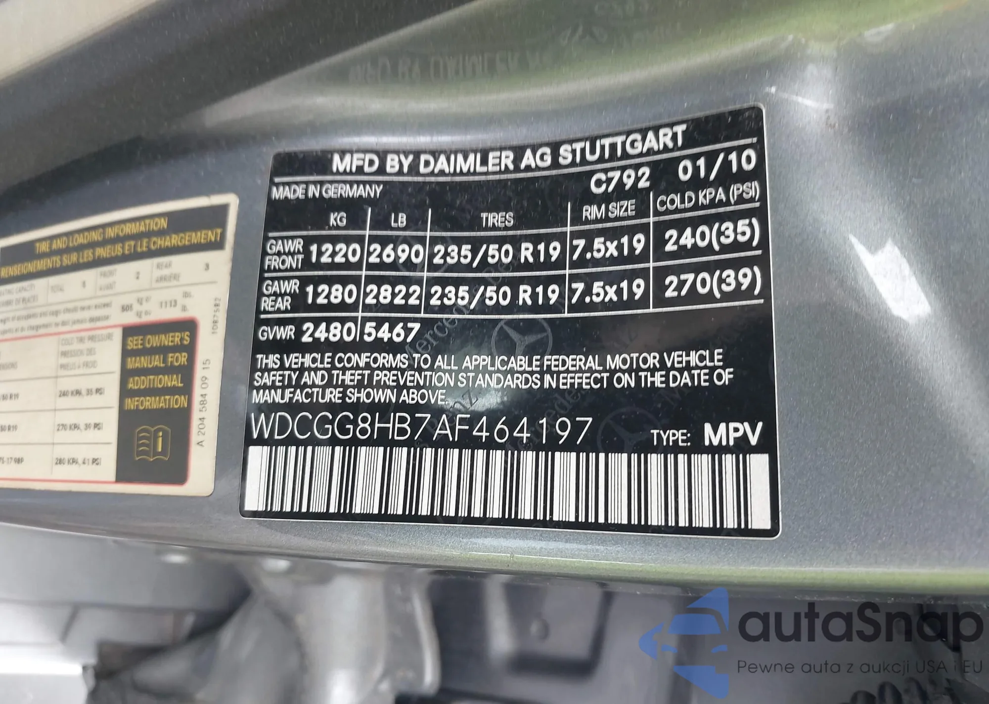• VIN WDCGG8HB7AF464197
