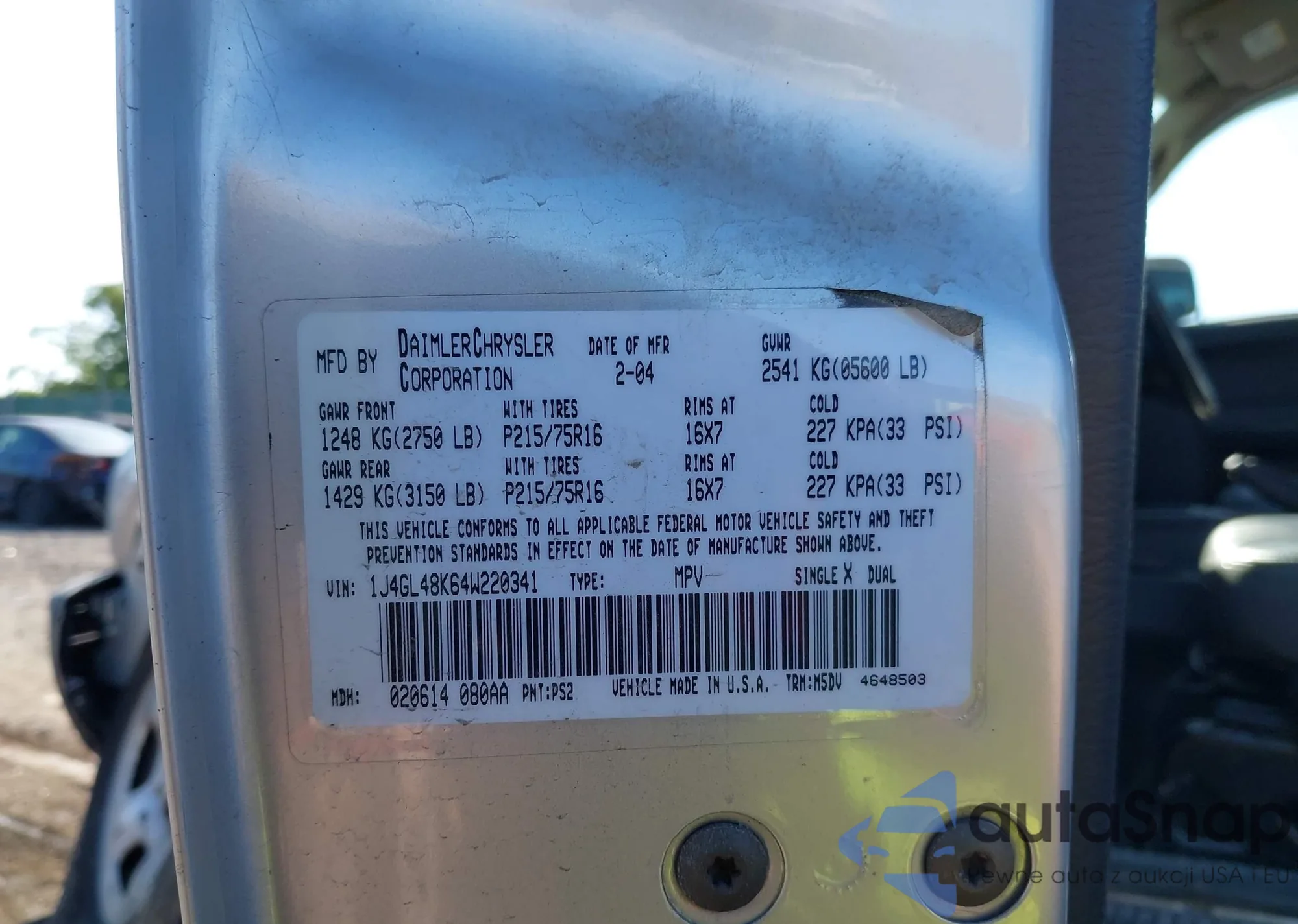 LOT: 42919857 VIN: 1J4GL48K64W220341