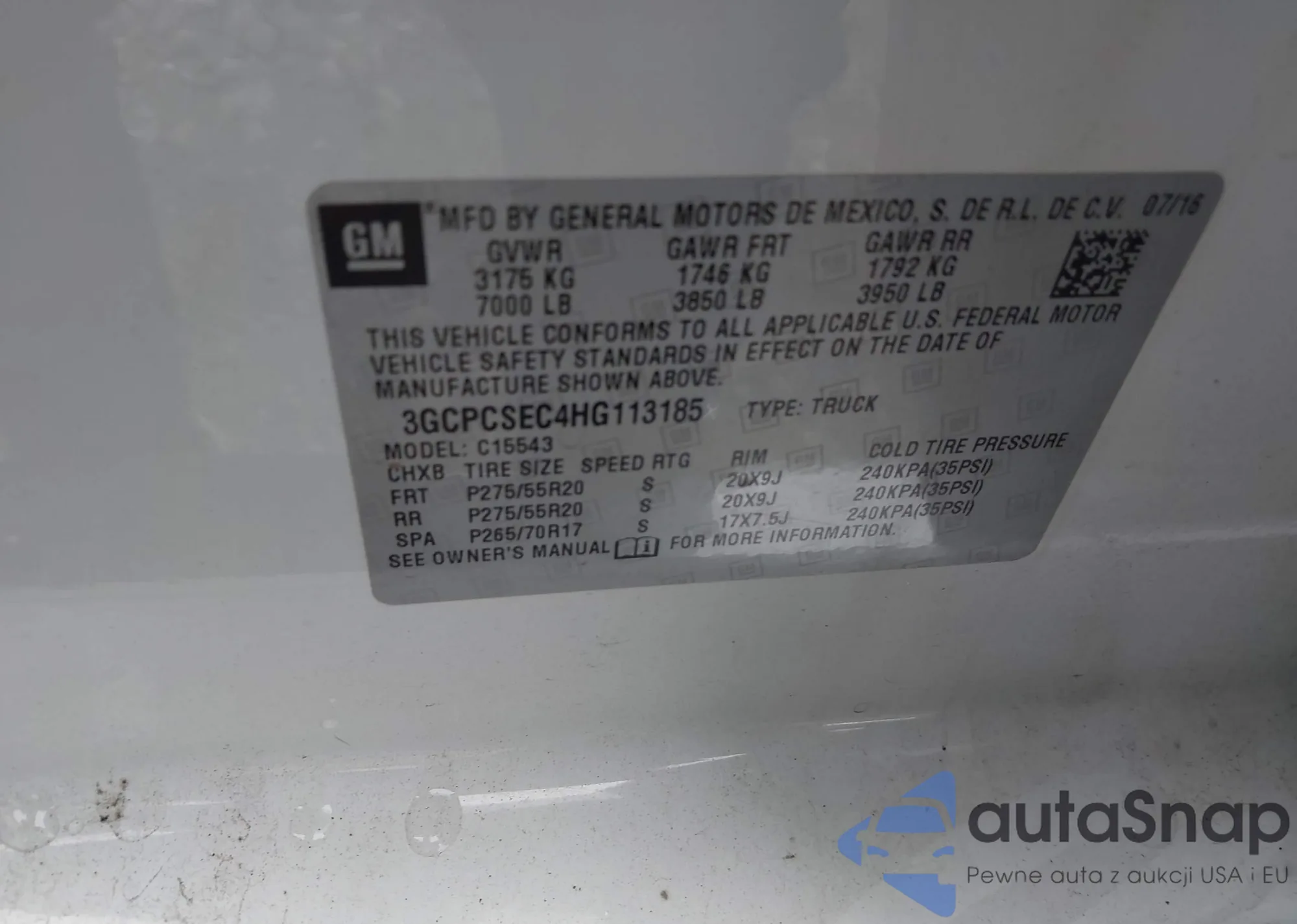 LOT: 42733649 VIN: 3GCPCSEC4HG113185