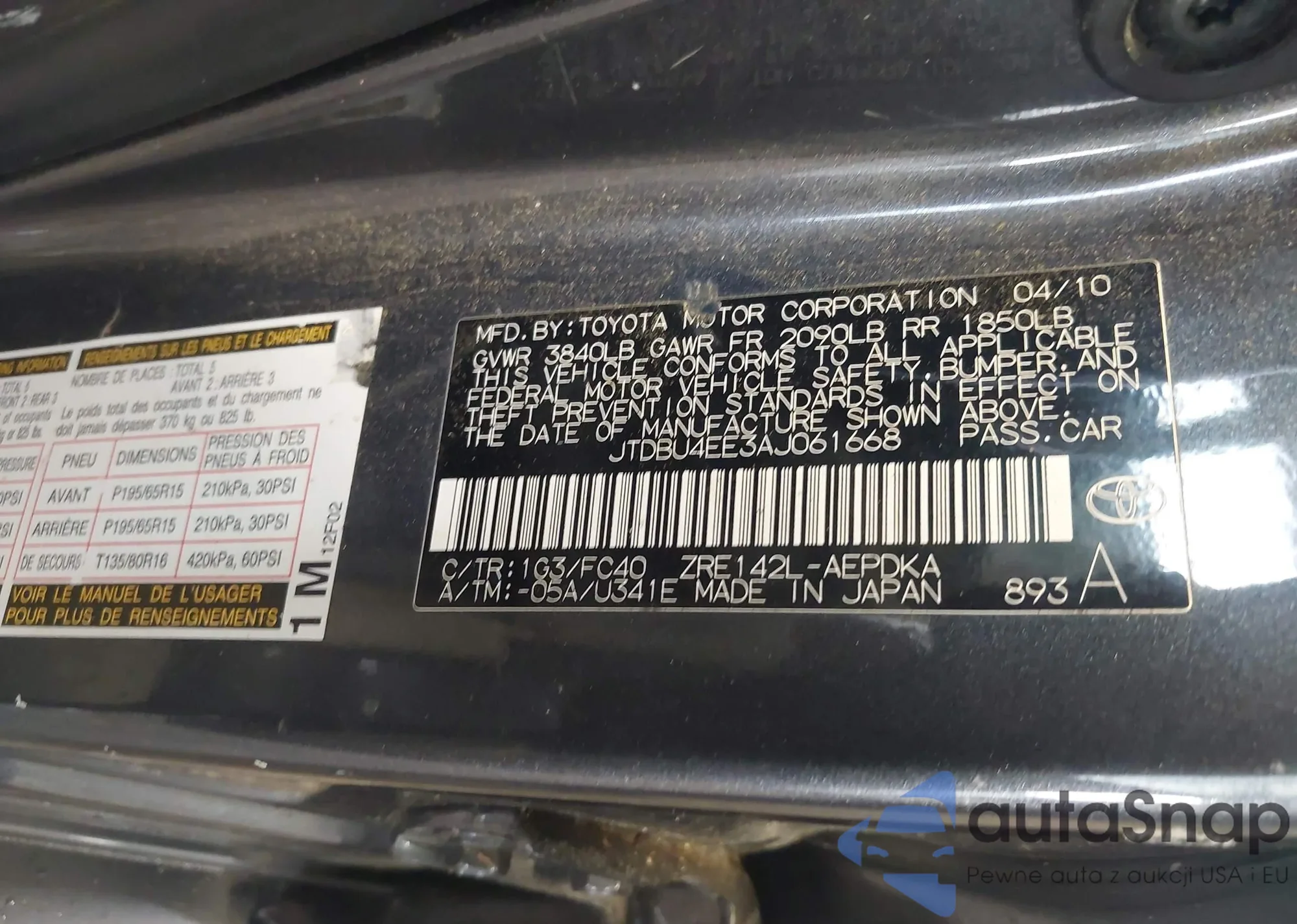 • VIN 4T1BE30KX5U099421