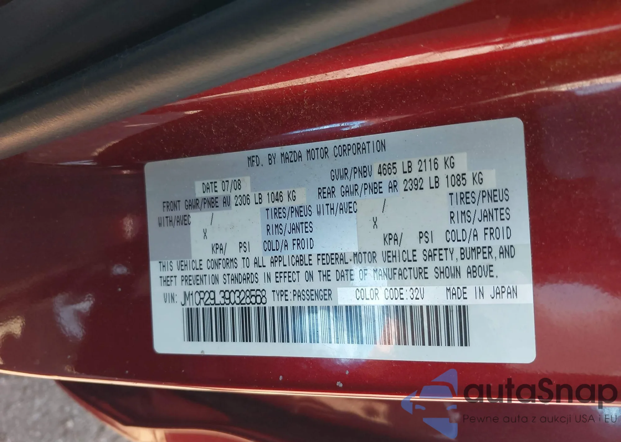 • VIN JTMBK4DV3A5088627