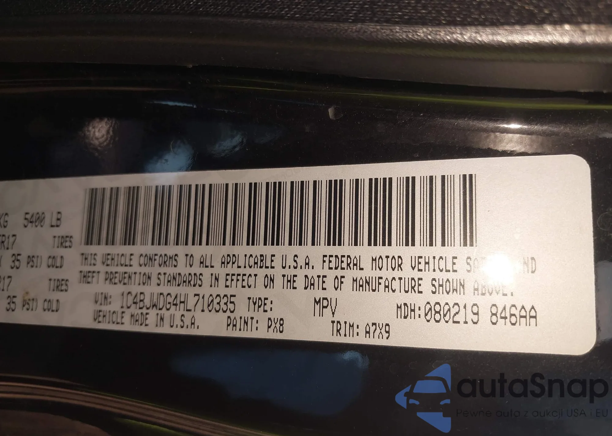 • VIN SHHFK7H58JU235292