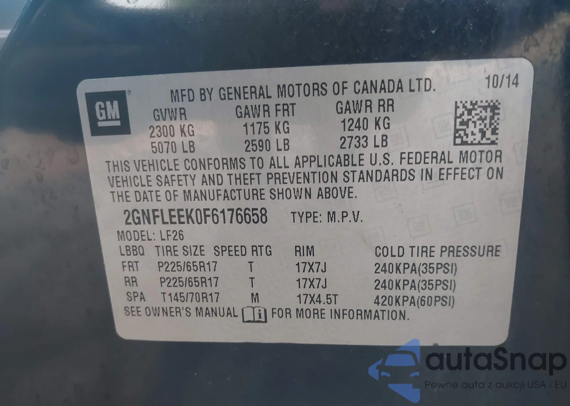 LOT: 42951349 VIN: 5KBCP3F8XAB003516