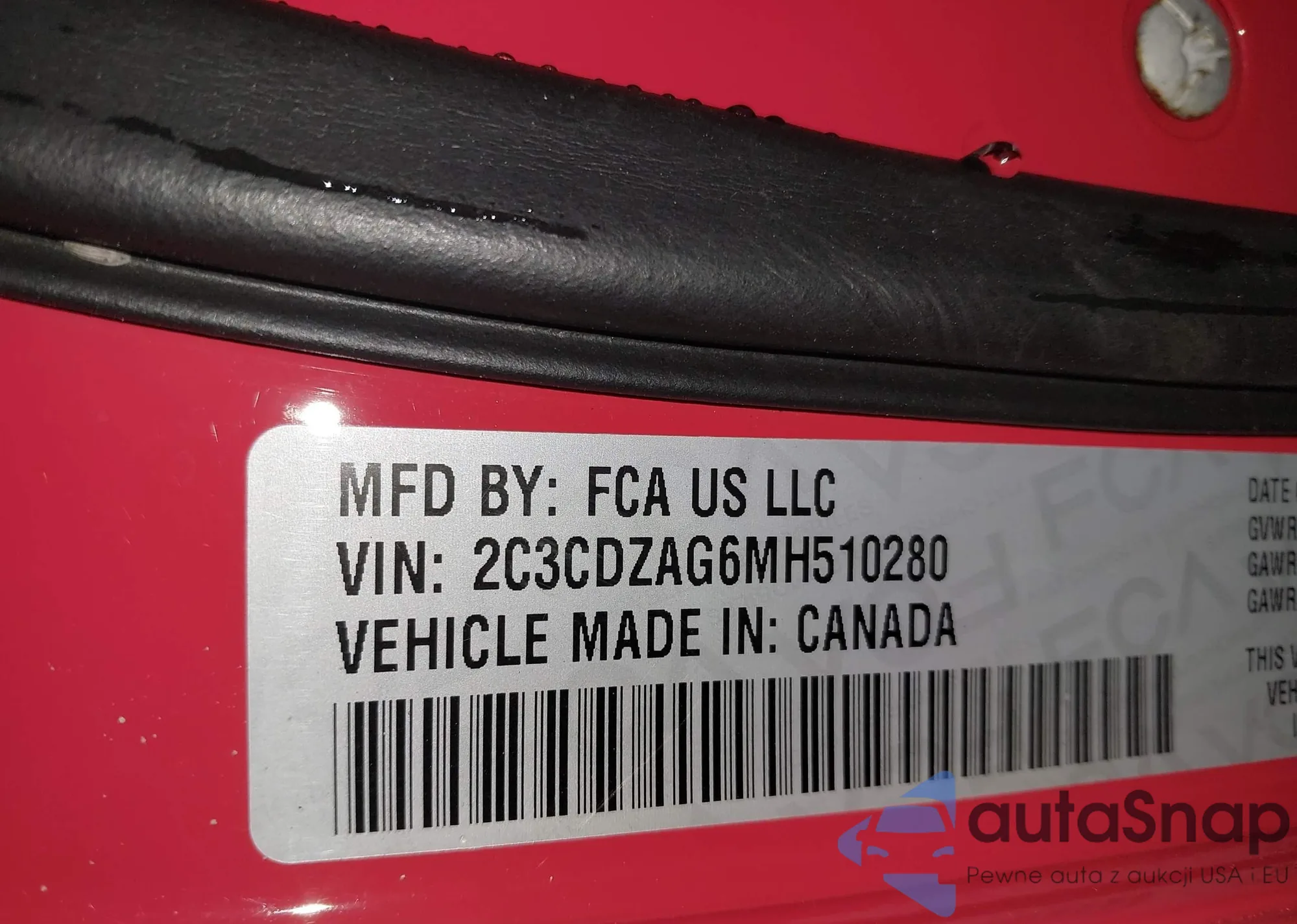 LOT: 41955385 VIN: 2C3CDZAG6MH510280