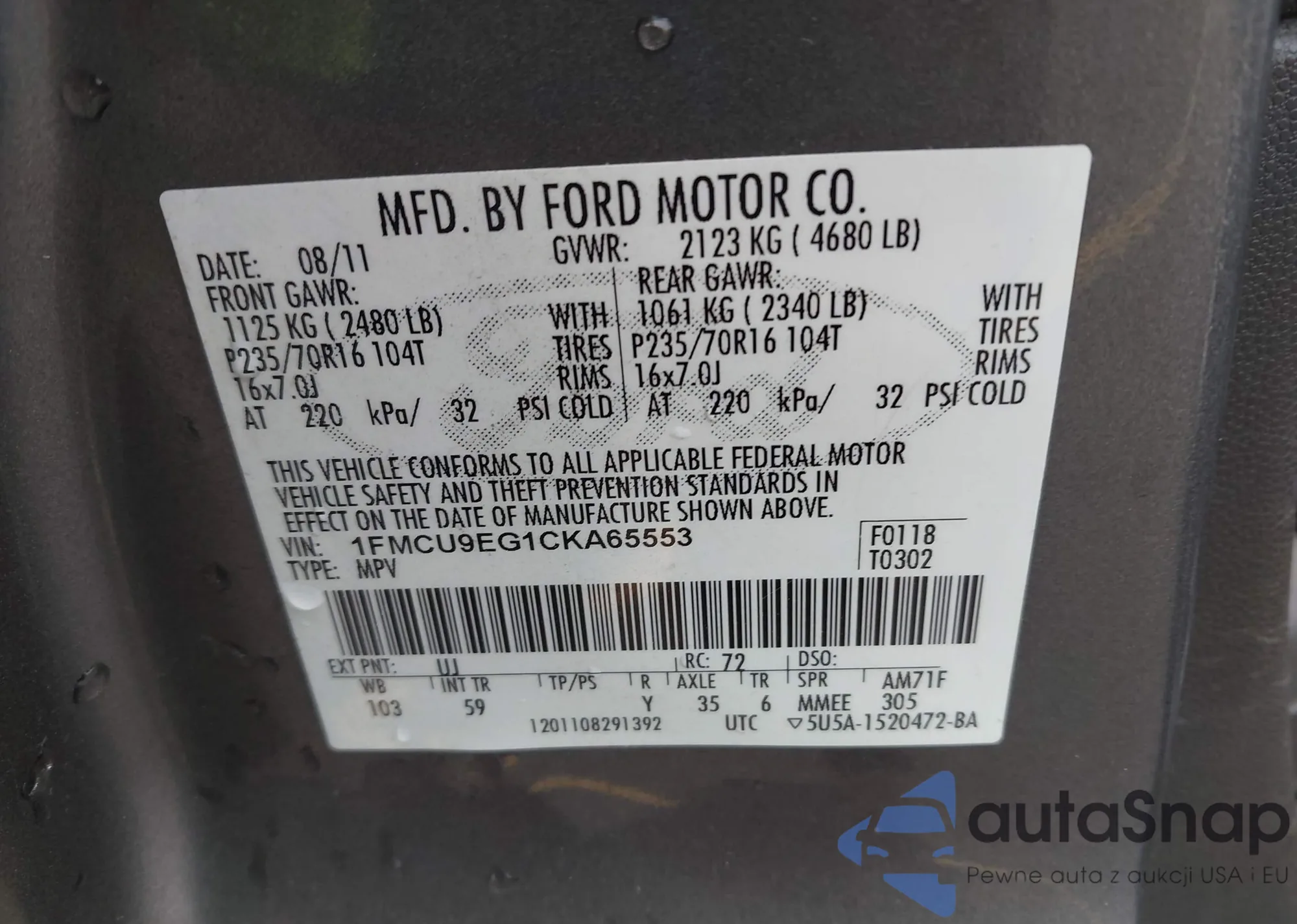 • VIN 1FMCU9EG1CKA65553