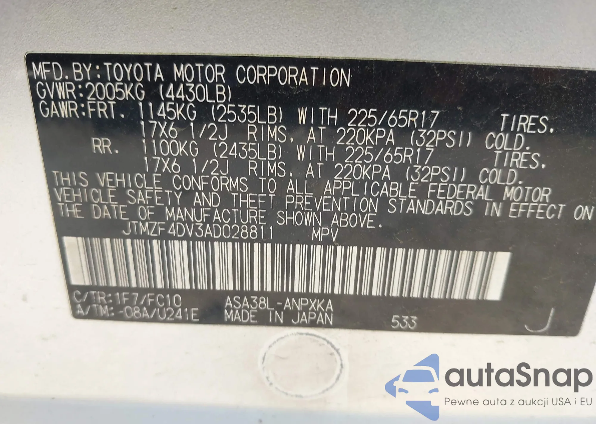 LOT: 42724678 VIN: JN8AT3CA2MW019545