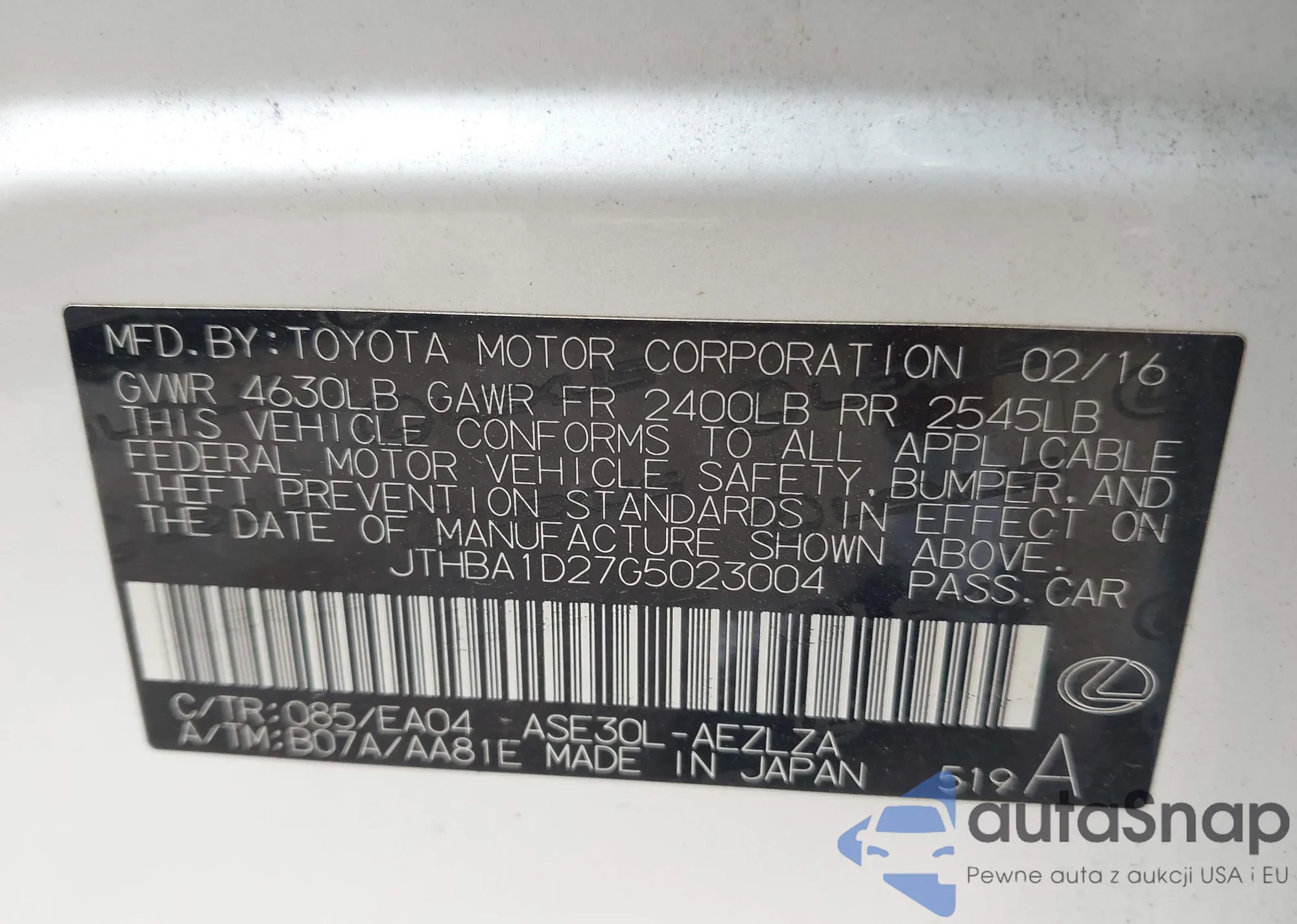LOT: 42728935 VIN: JTEZU5JRXC5041938