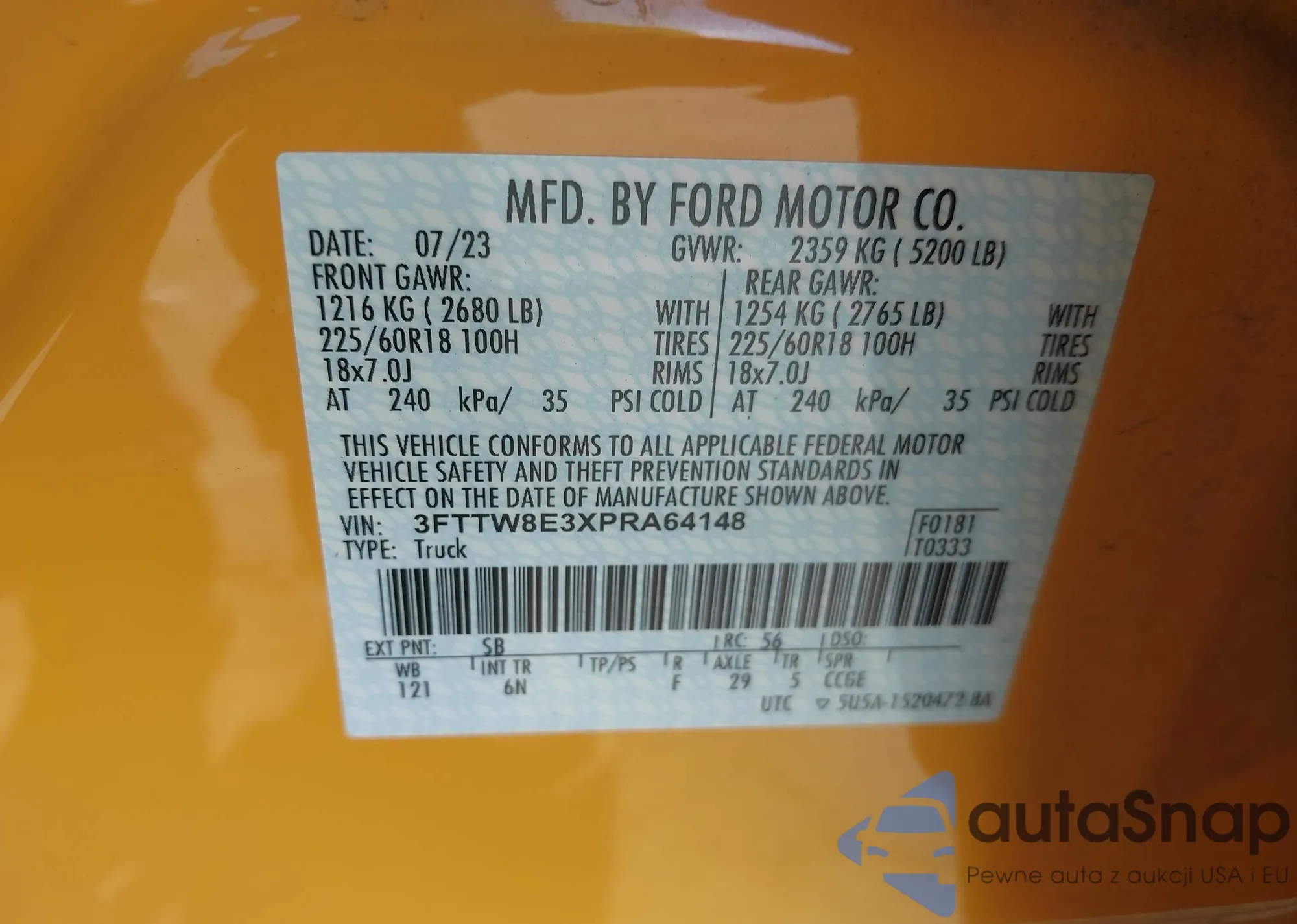 LOT: 42736540 VIN: 3FTTW8E3XPRA64148
