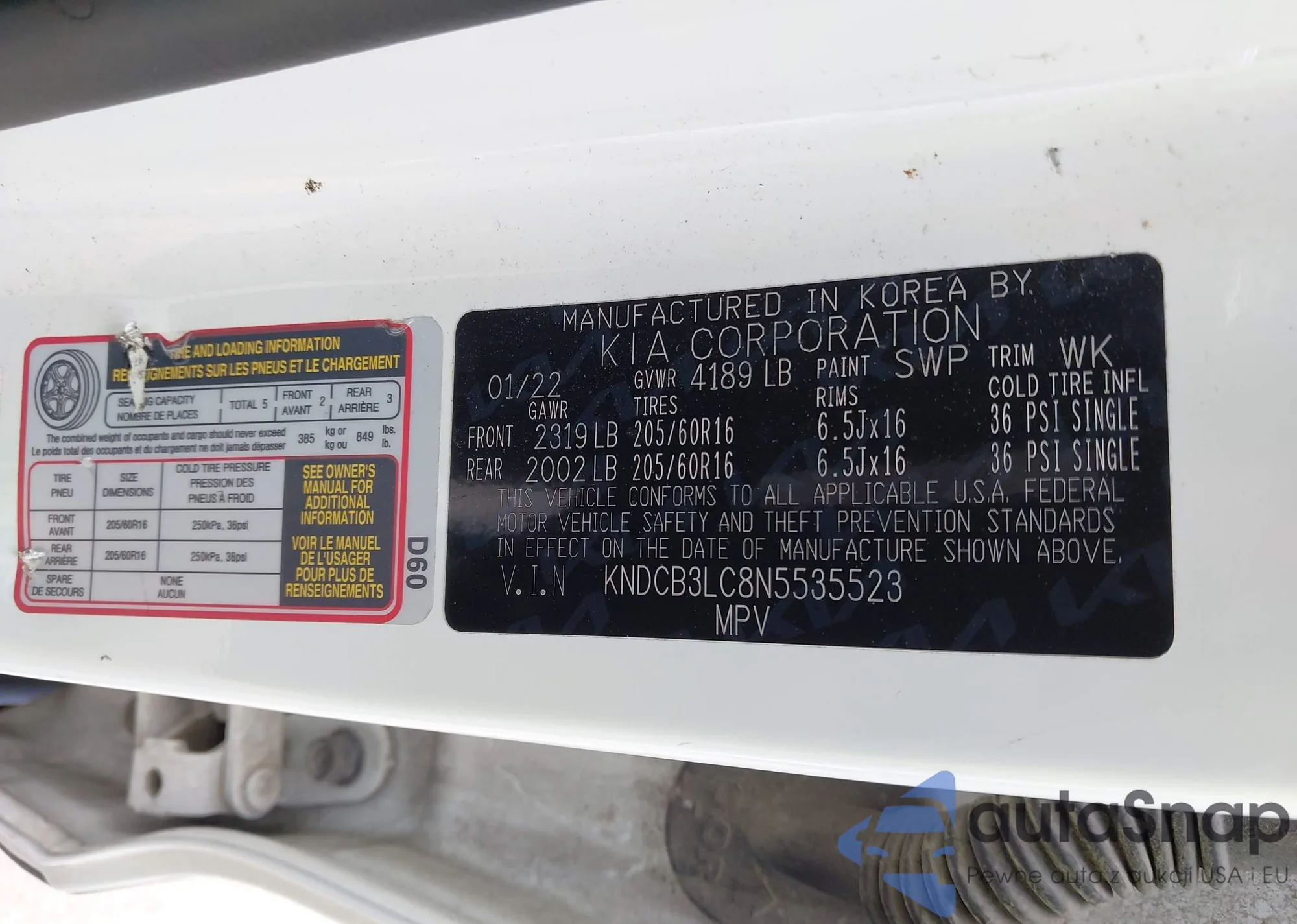LOT: 42892421 VIN: KNAFZ4A84F5334844