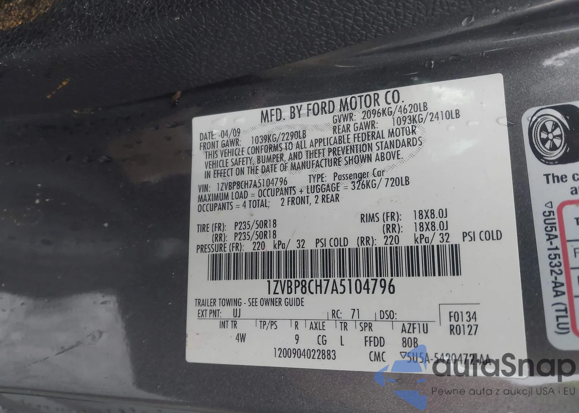 • VIN 1ZVBP8CH7A5104796