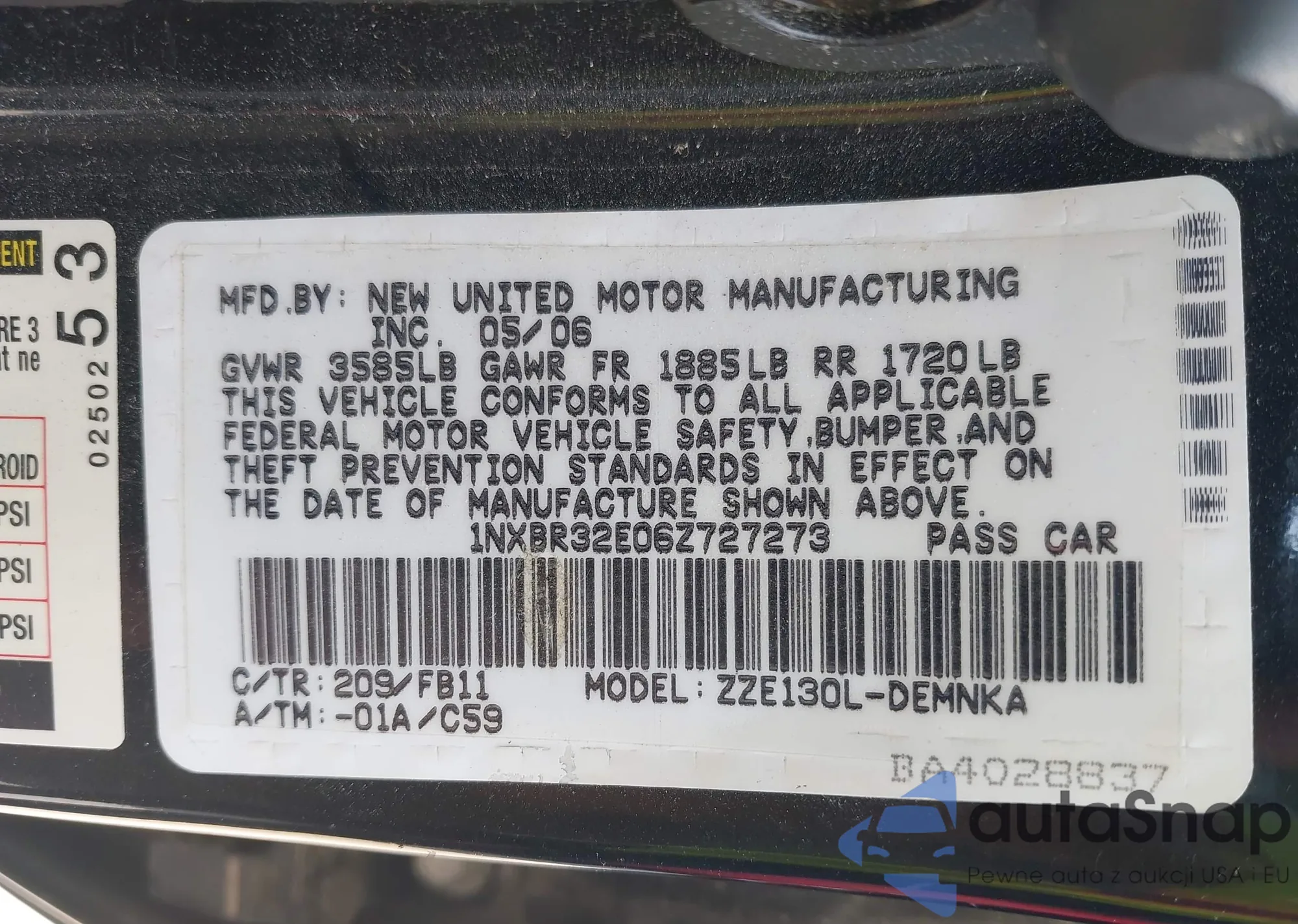 • VIN 1NXBR32E06Z727273