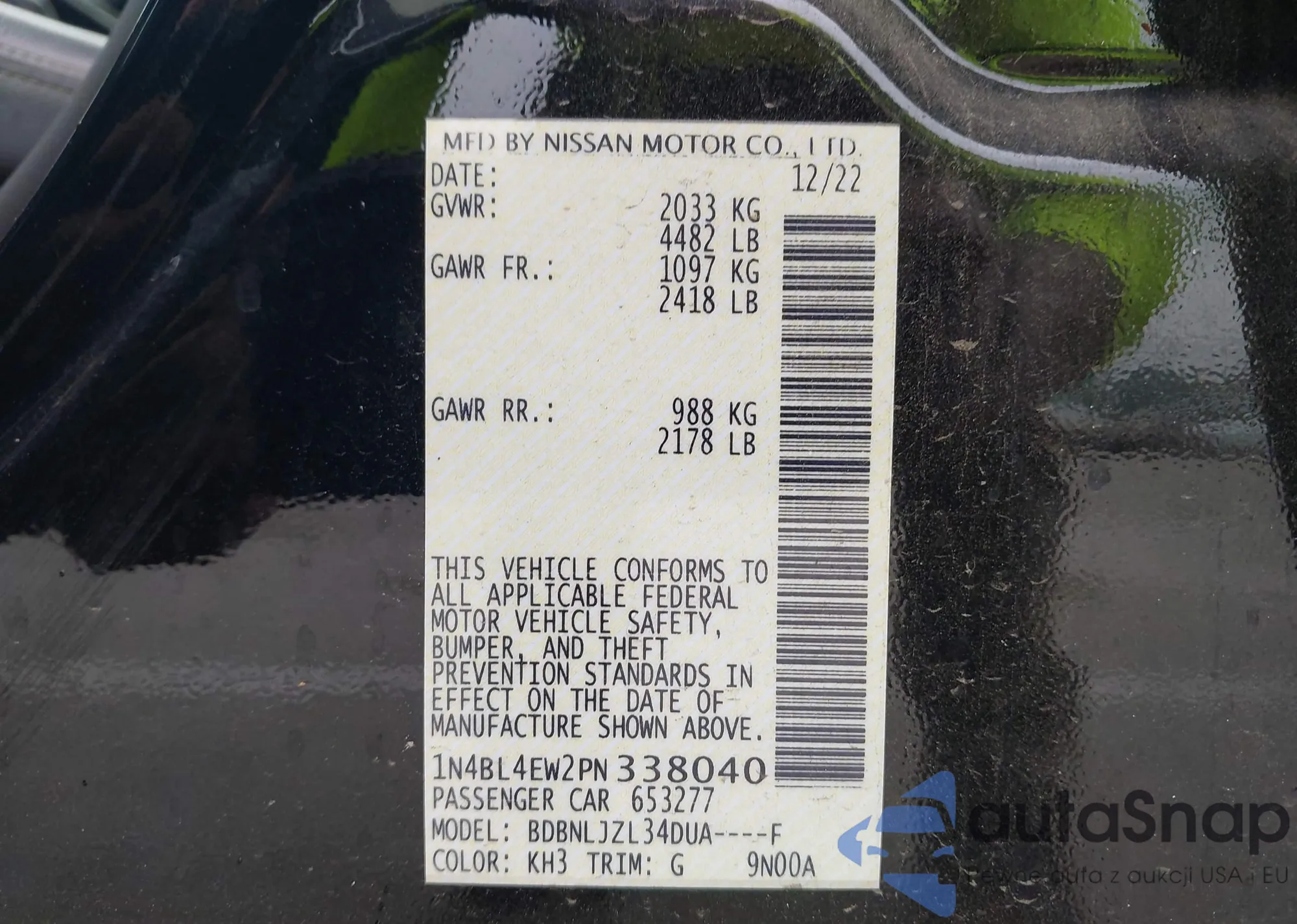 LOT: 42409532 VIN: 1N4BL4EW2PN338040