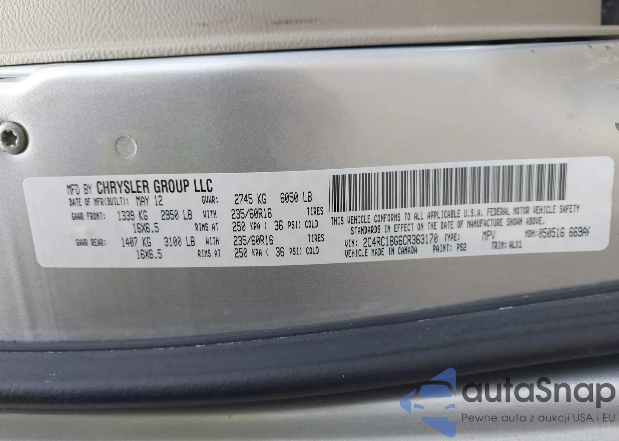 • VIN 2C4RC1BG6CR363170
