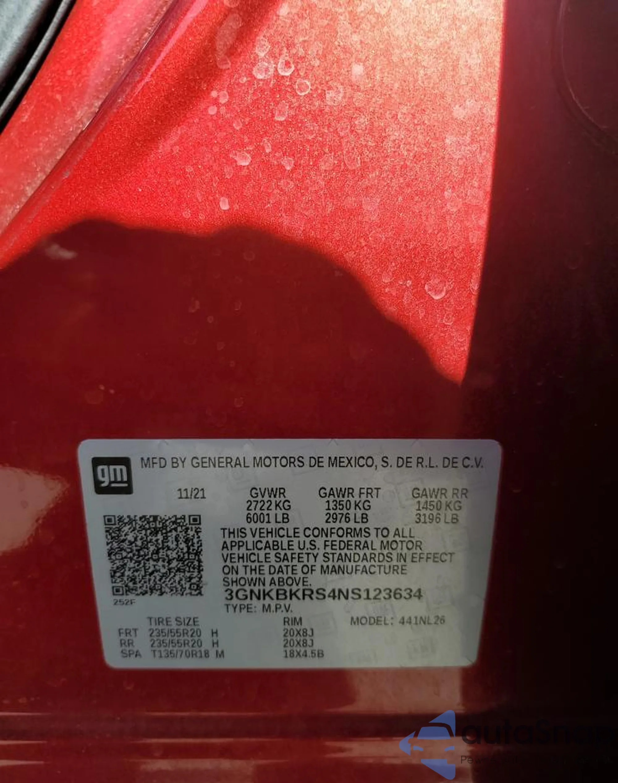 • VIN 3GNKBKRS4NS123634