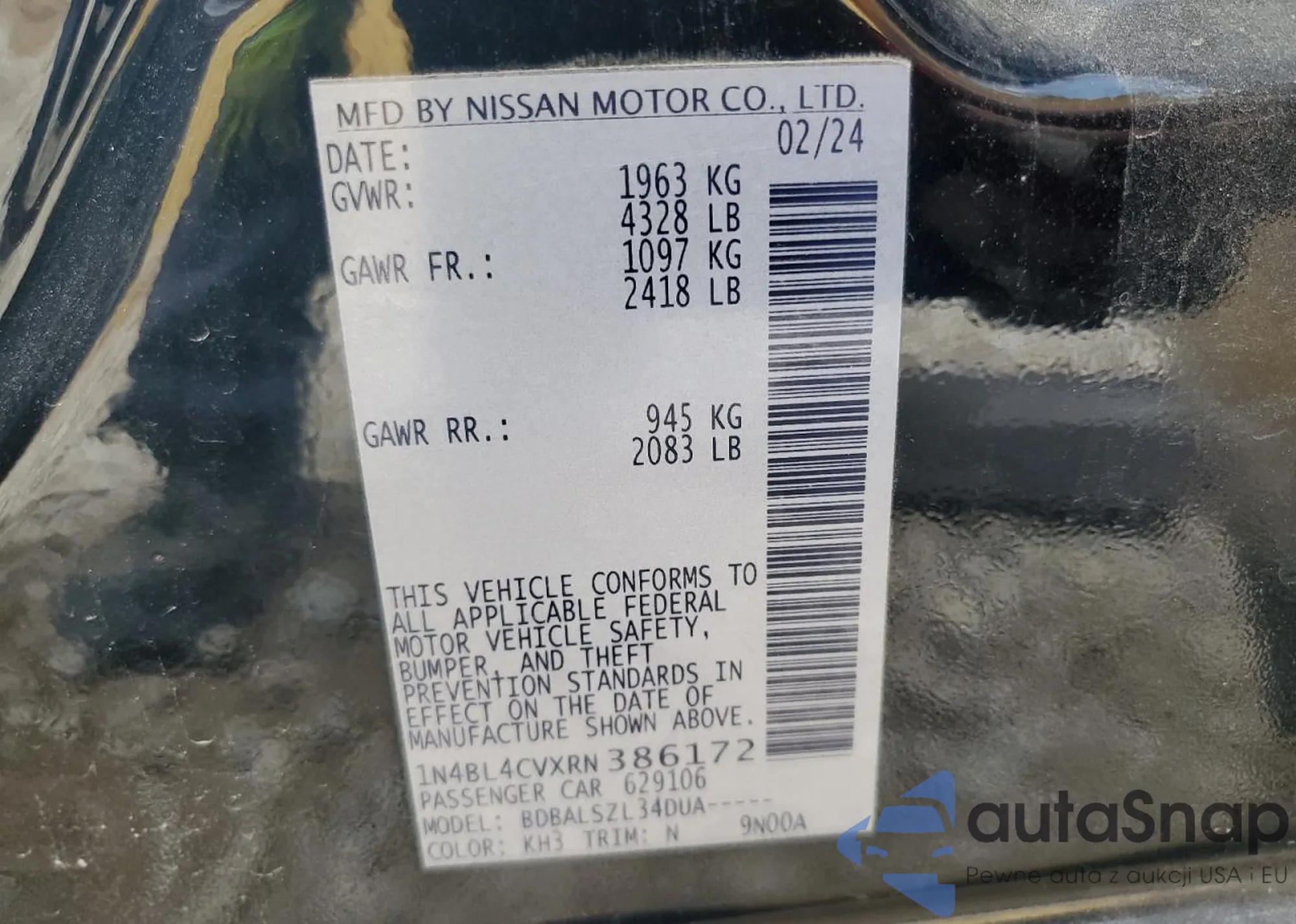 • VIN 1N4BL4CVXRN386172