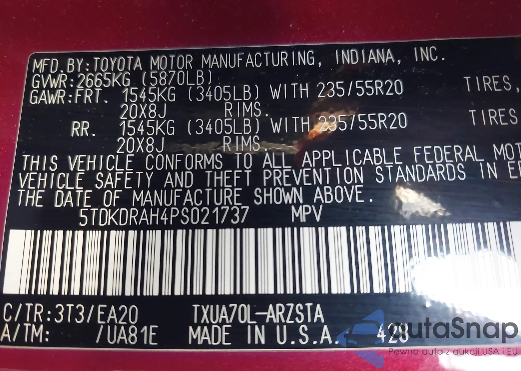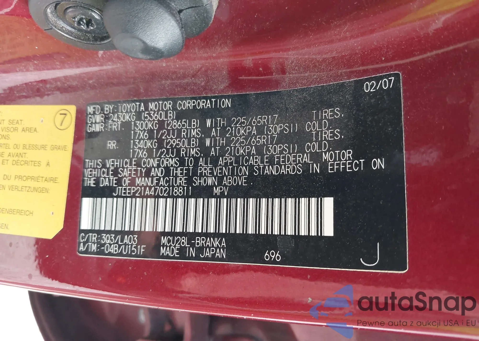 LOT: 42901968 VIN: JTEEP21A470218811