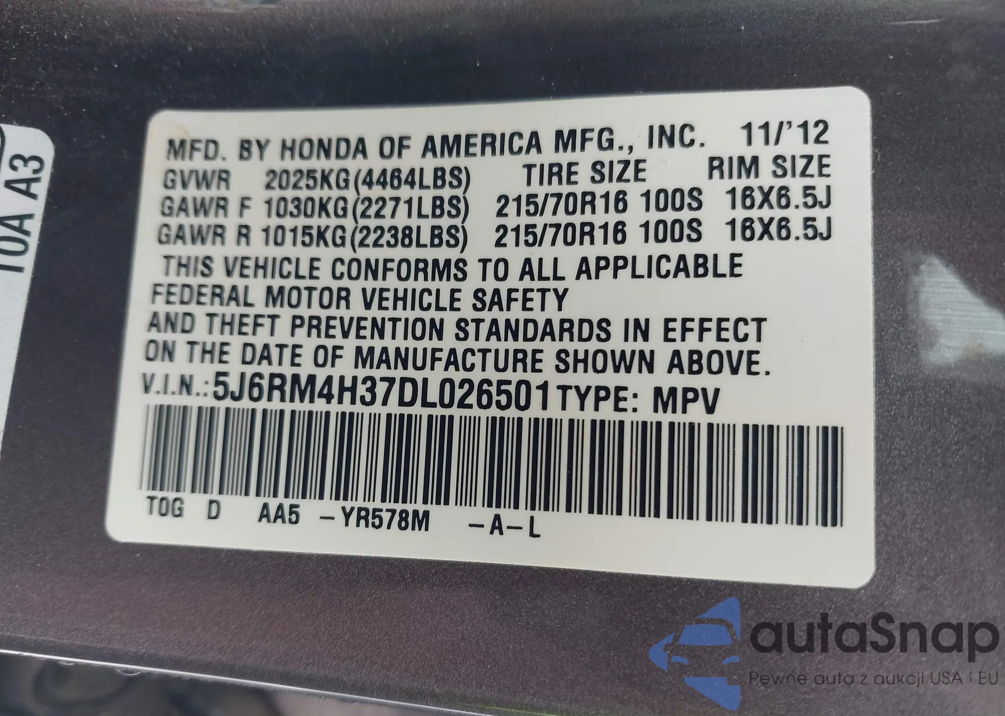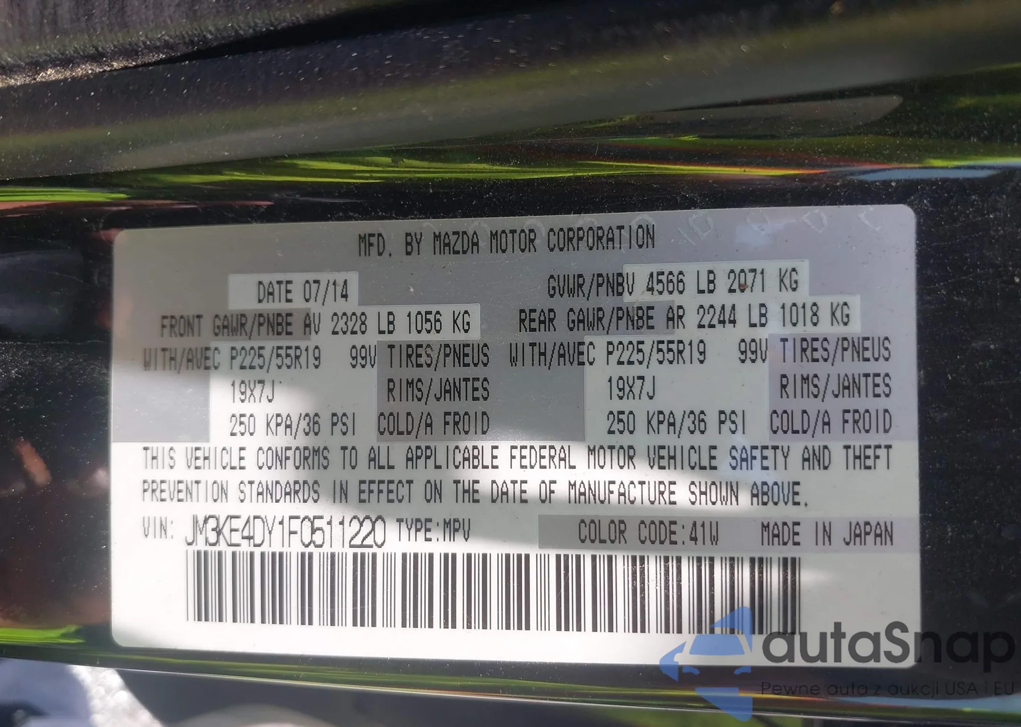 LOT: 42682897 VIN: JM3KE4DY1F0511220