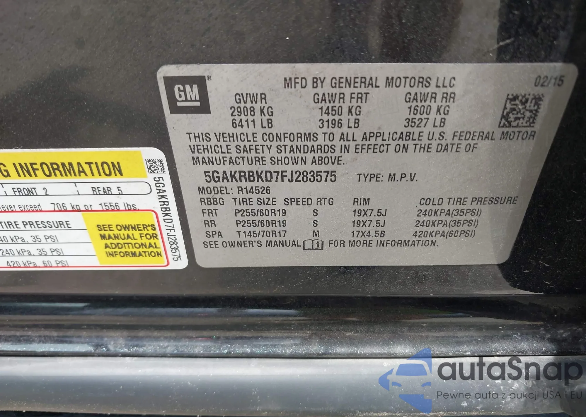 • VIN 5GAKRBKD7FJ283575