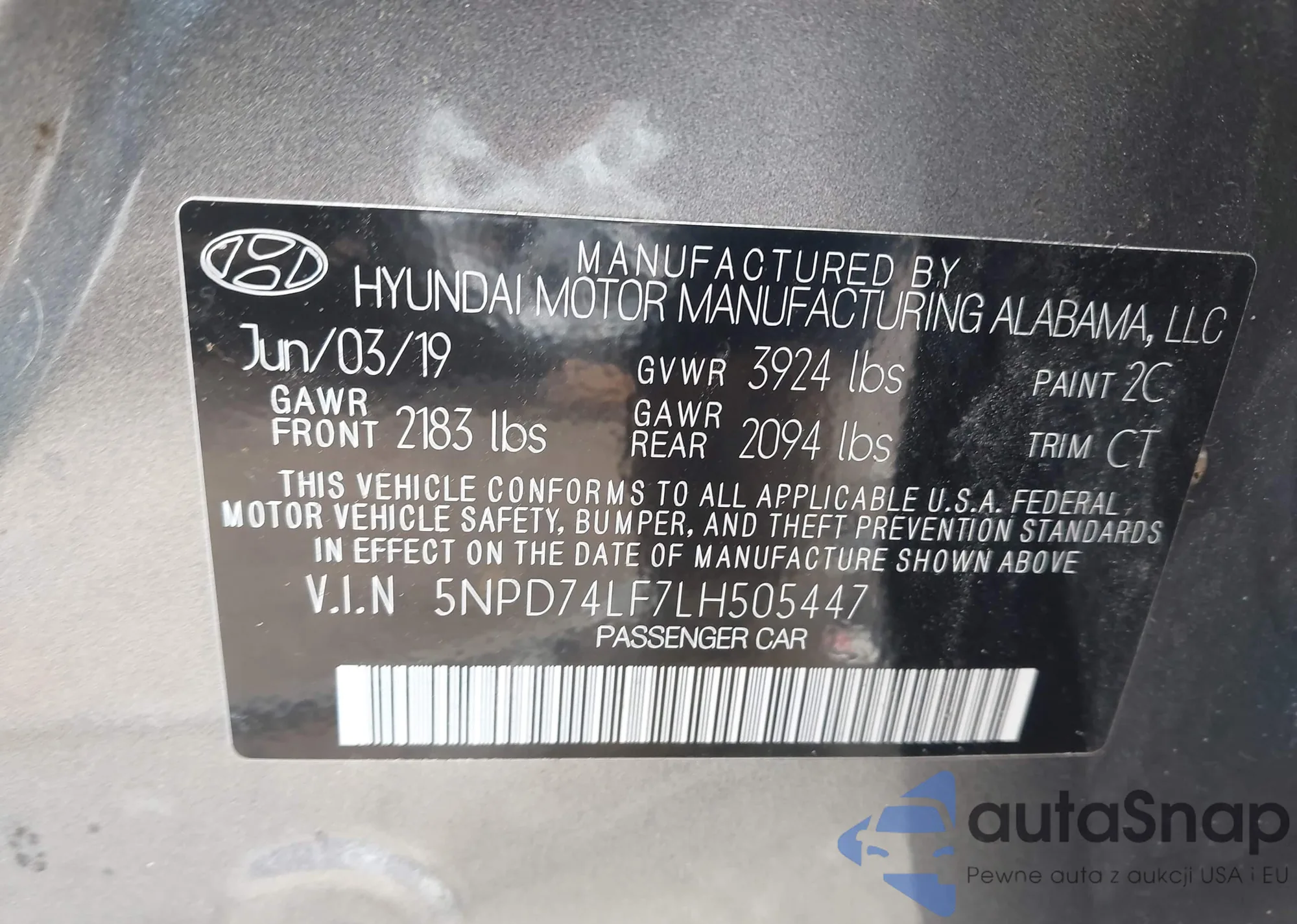 • VIN 5NPD74LF7LH505447