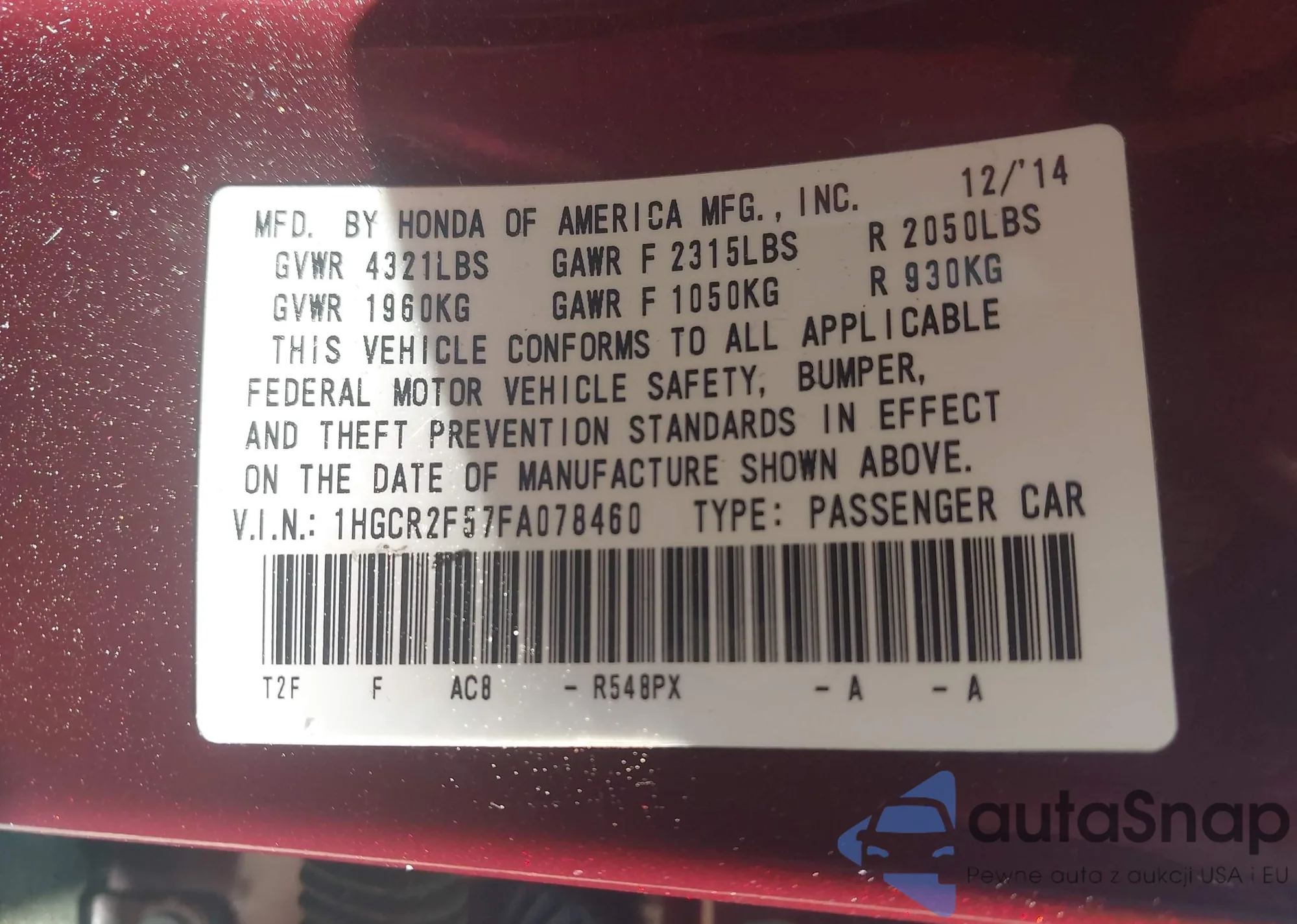 LOT: 42868117 VIN: 1NXBR32E94Z264918