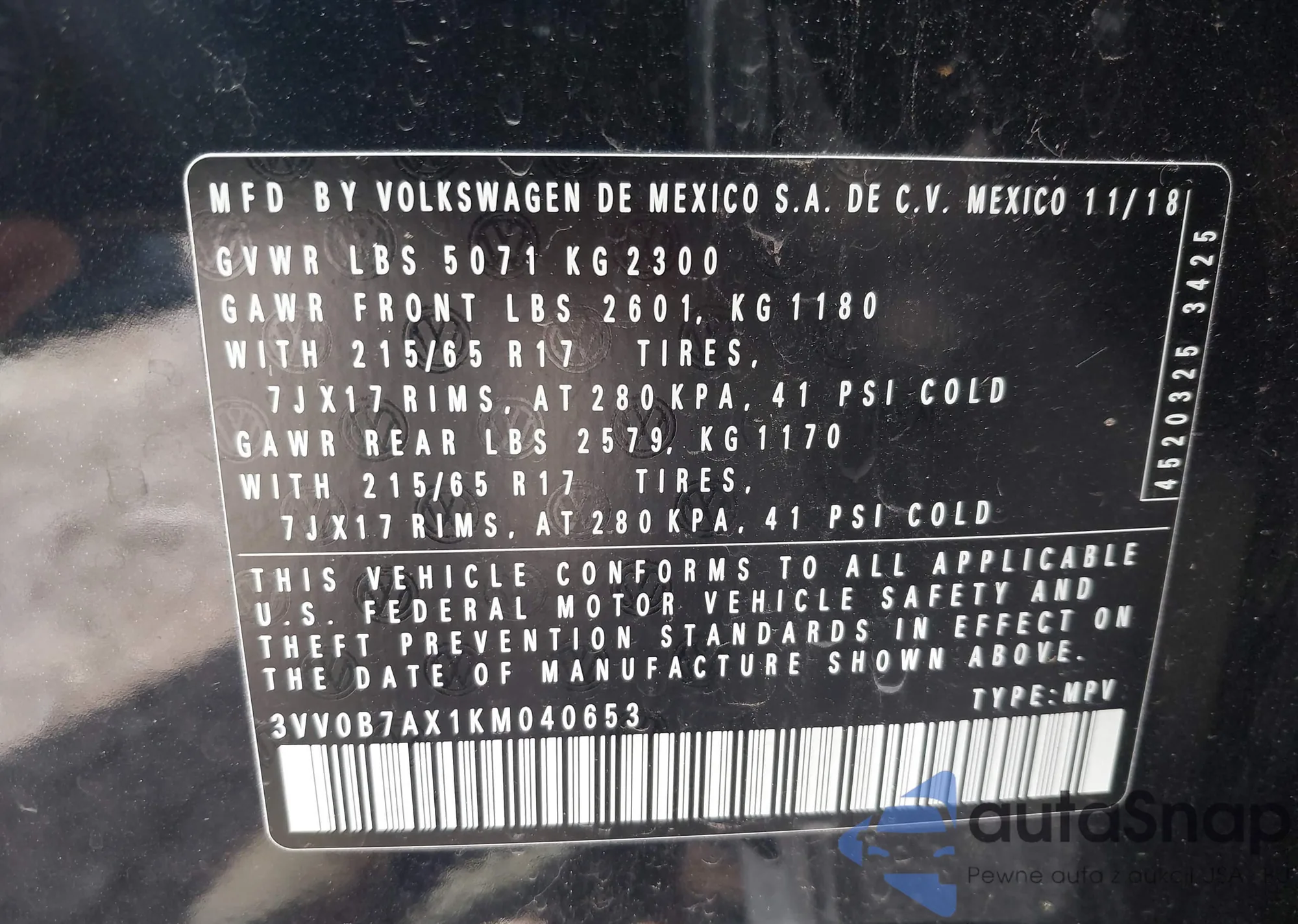 • VIN 3VV0B7AX1KM040653