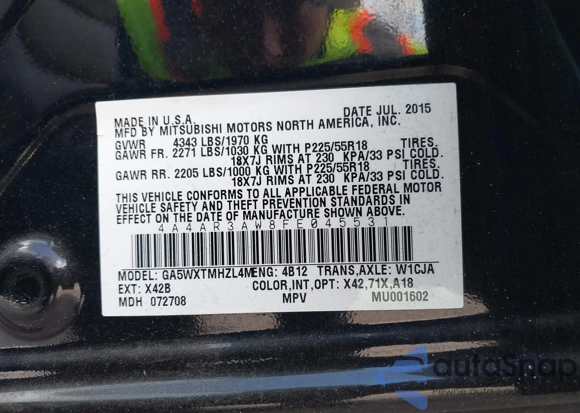 LOT: 41595271 VIN: 4A4AR3AW8FE045531