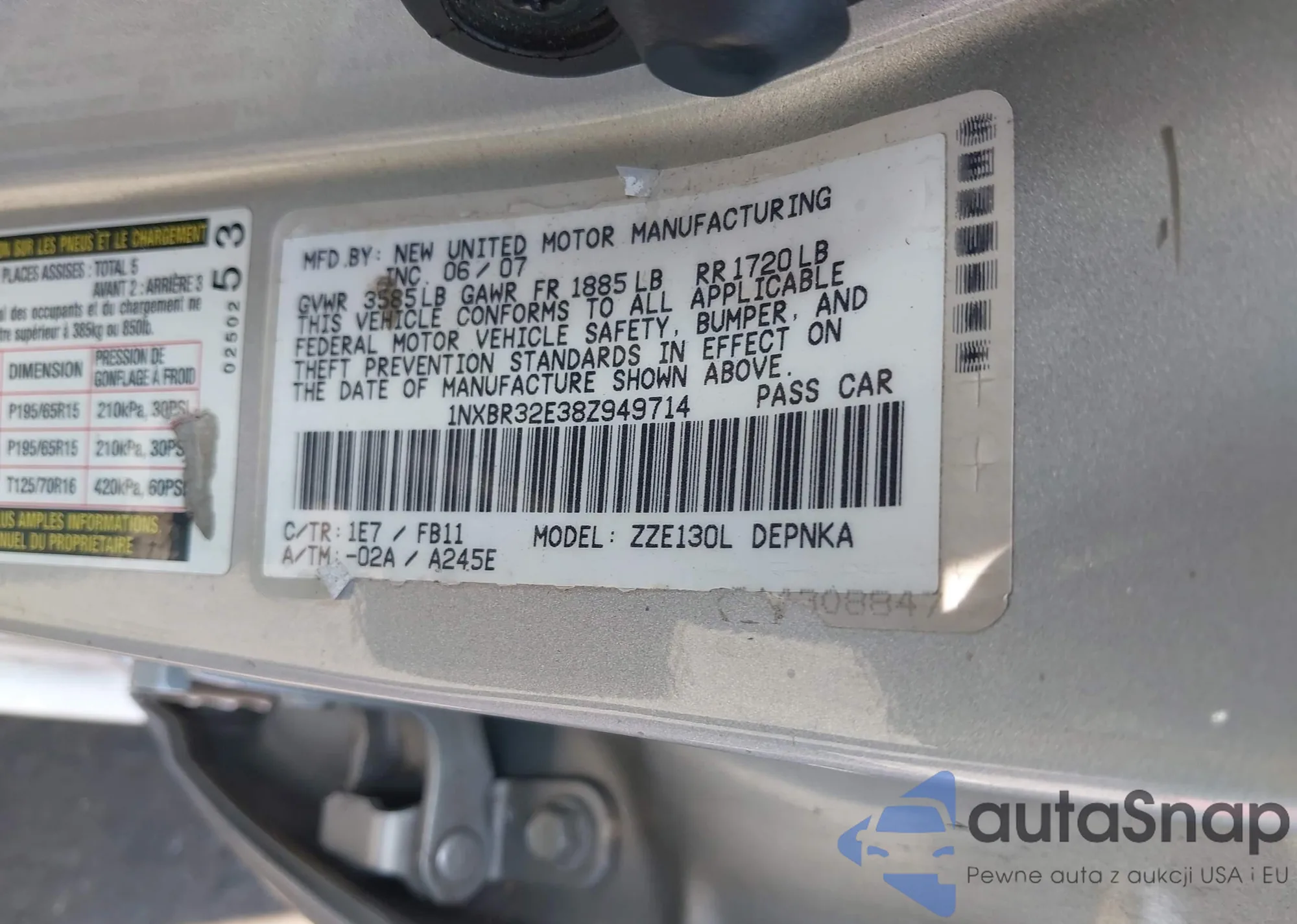 • VIN 1NXBR32E38Z949714