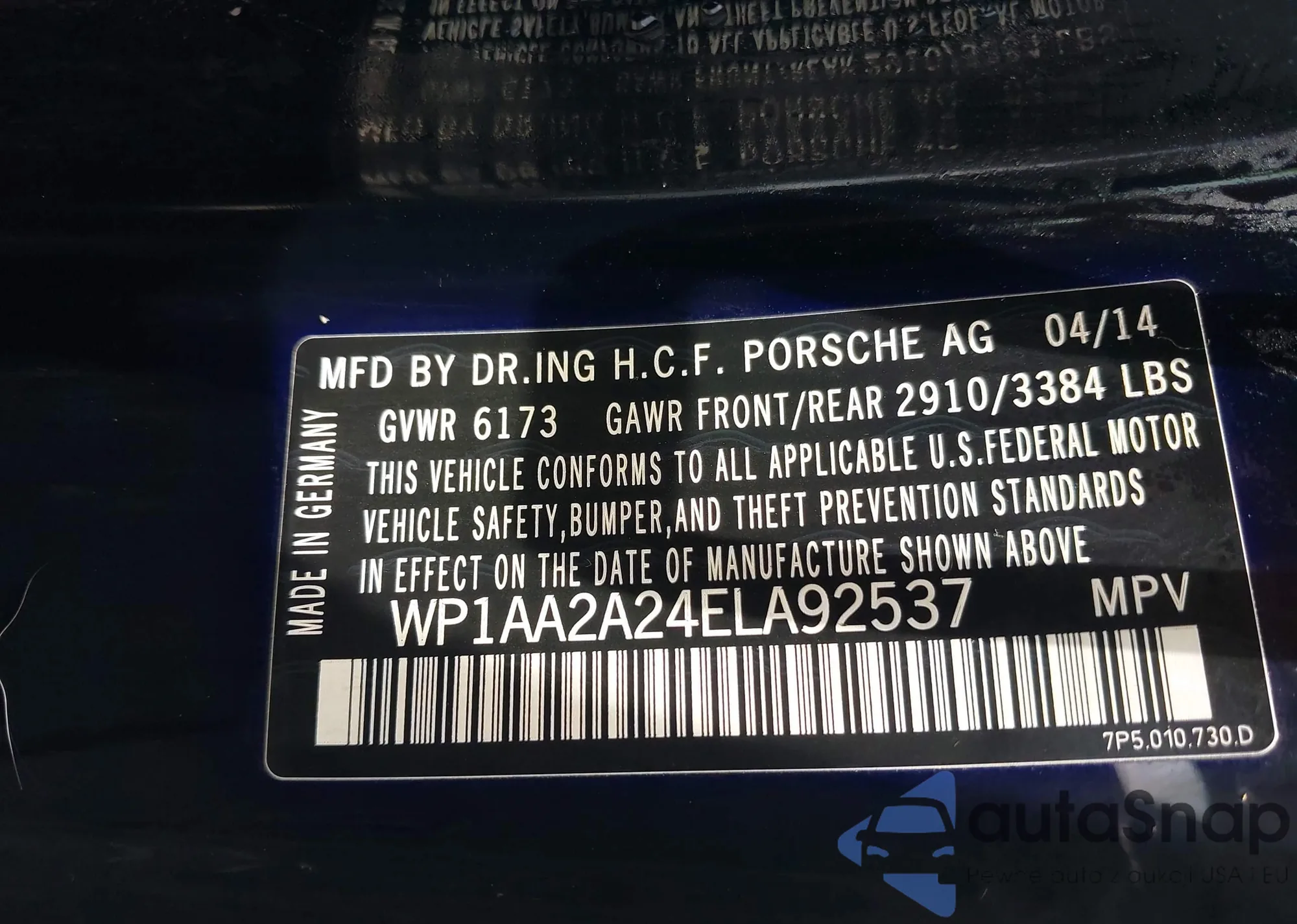 LOT: 42784163 VIN: WP1AA2A50JLB20886