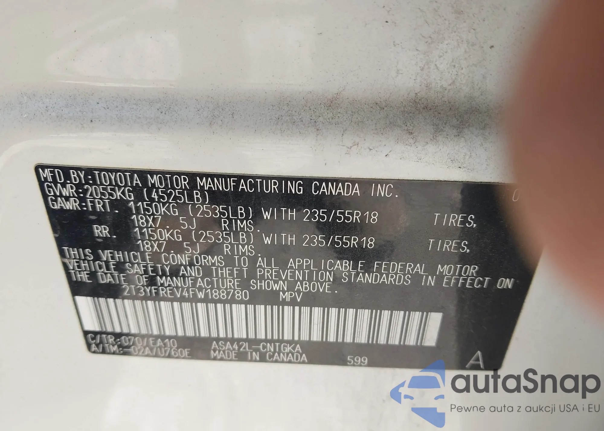 • VIN 5J6TF3H54FL000260