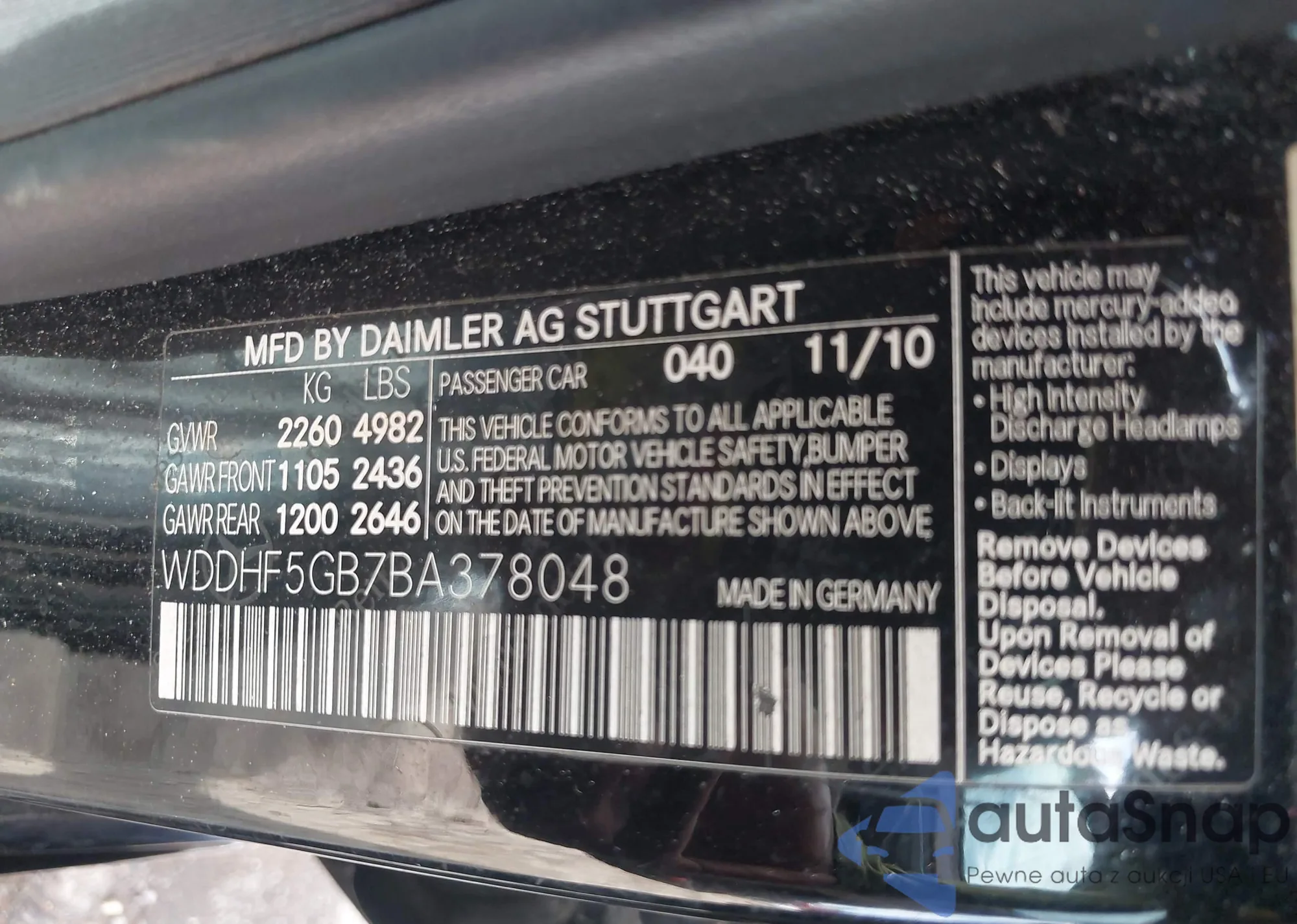 • VIN WDDHF5GB7BA378048