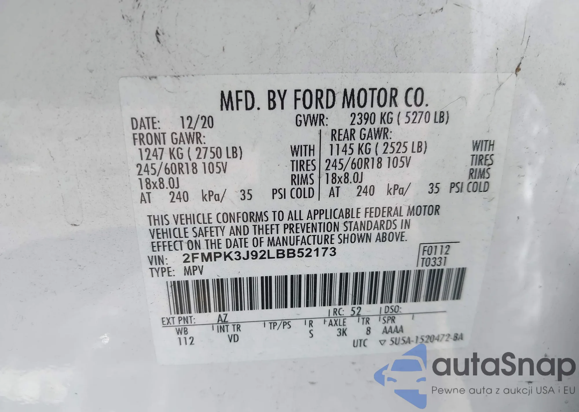 • VIN 2FMPK3J92LBB52173